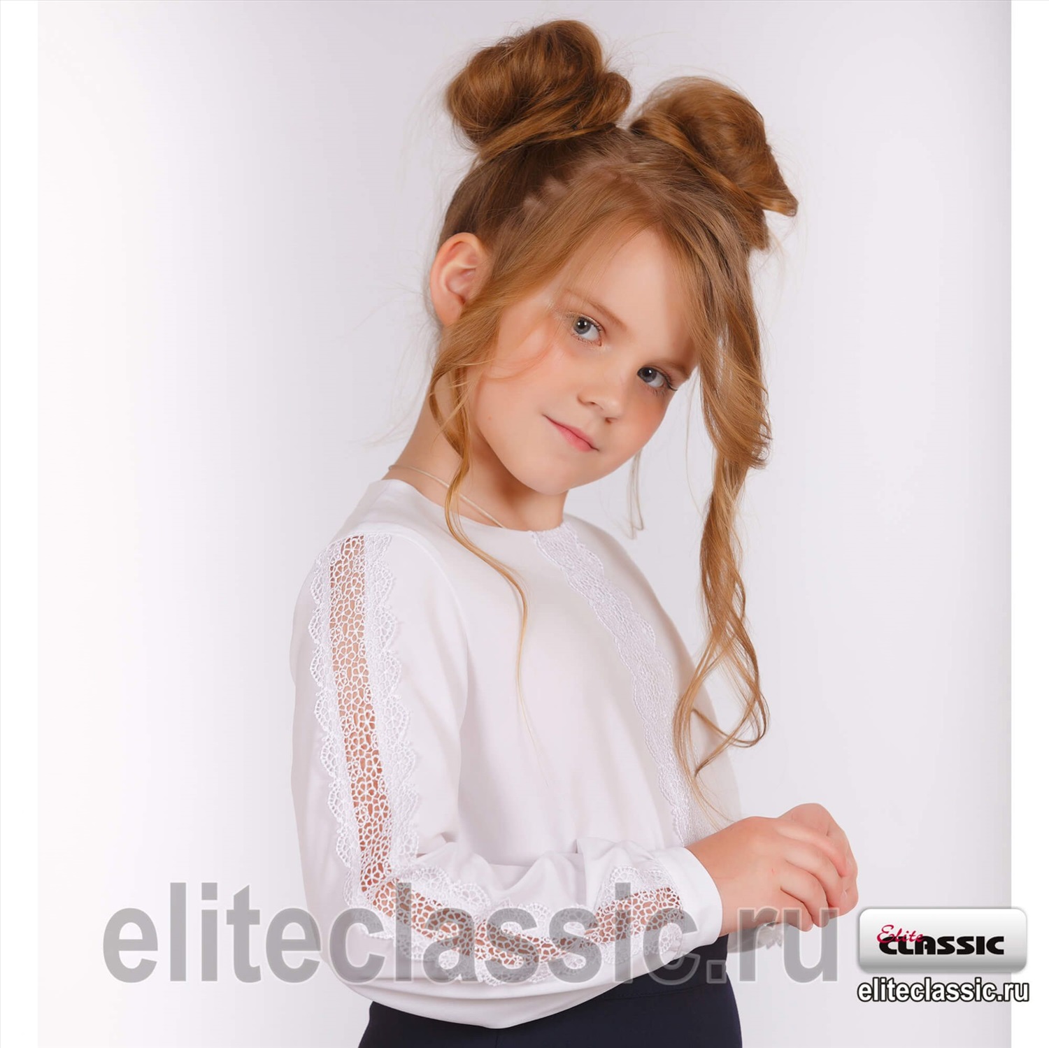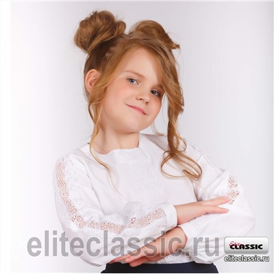 Блузка прямого силуэта для девочек младших классов, без воротника, с застёжкой по спинке, с навесной петлёй и пуговицей. Рукав втачной длинный, по низу со сборкой на манжете. Блузку украшает изящное кружево по середине переда и рукавах. Покрой: прямой Воротник: нет Вид рукава: втачной, длинный, со сборкой по низу, на притачной манжете Вид застёжки: разрез по спинке на навесную петлю и пуговицу Детали одежды: кружево по переду и рукавам Уход за вещами: бережная стирка при t° не более 30°С, гладить при t° не более 110°С, гладить с изнанки, деликатный отжим, отбеливание запрещено, сушка в вертикальном положении.