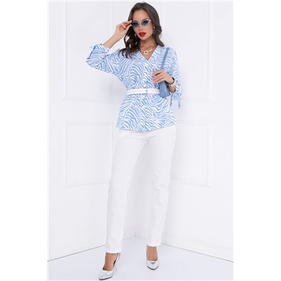 Состав: полиэстер 65%, вискоза 30%, эластан 5% Рост модели на фото: 172 см Покрой: свободный Линия талии: естественная линия талии Пояс: без пояса Вырез горловины/тип ворота: V-образный Длина рукава: 7/8 Форма рукава: классический (втачной) Вид застежки: Пуговицы Сезон: весна/лето, осень Стиль: классический Дресс код: офисный, повседневный, праздничный Назначение: повседневное, праздничное Цвет: белый, голубой Рисунок/узор/орнамент/принт: зебра Комплектация (да/нет): Блуза Мауро – блузка свободного кроя из блузочной ткани. Вырез горловины V-образный. Рукава блузки имеют длину 7/8, что делает их универсальными и подходящими для различных сезонов. Декоративные завязки на рукавах придают блузке дополнительный шарм и интересный акцент, делая ее более стильной и оригинальной. Принт зебра придает дерзкий и модный вид, делая ее ярким акцентом в Вашем гардеробе. Создайте свой стиль вместе с "Белловера"! Рост модели – 172 см. Длина изделия: 48 размер – 70 см, 50 размер – 70 см, 52 размер – 70 см, 54 размер – 71 см, 56 размер – 71 см, 58 размер – 72 см, 60 размер – 72 см. Комментарии к товару