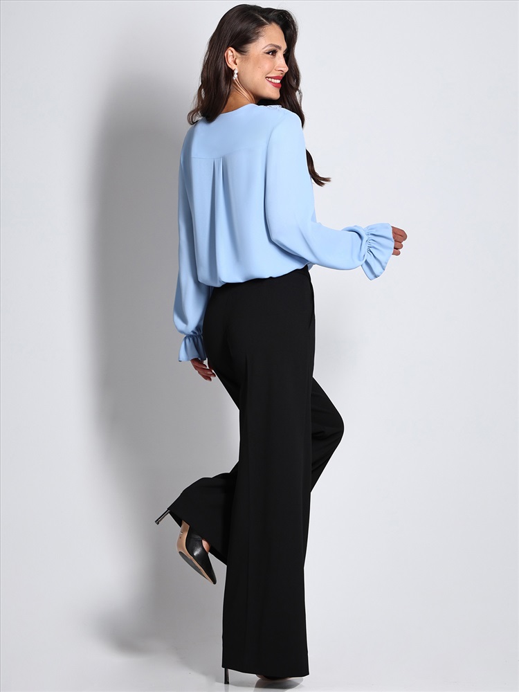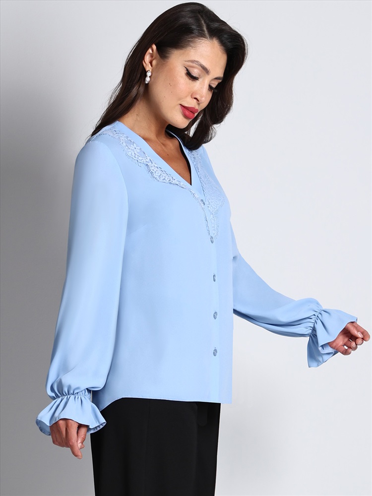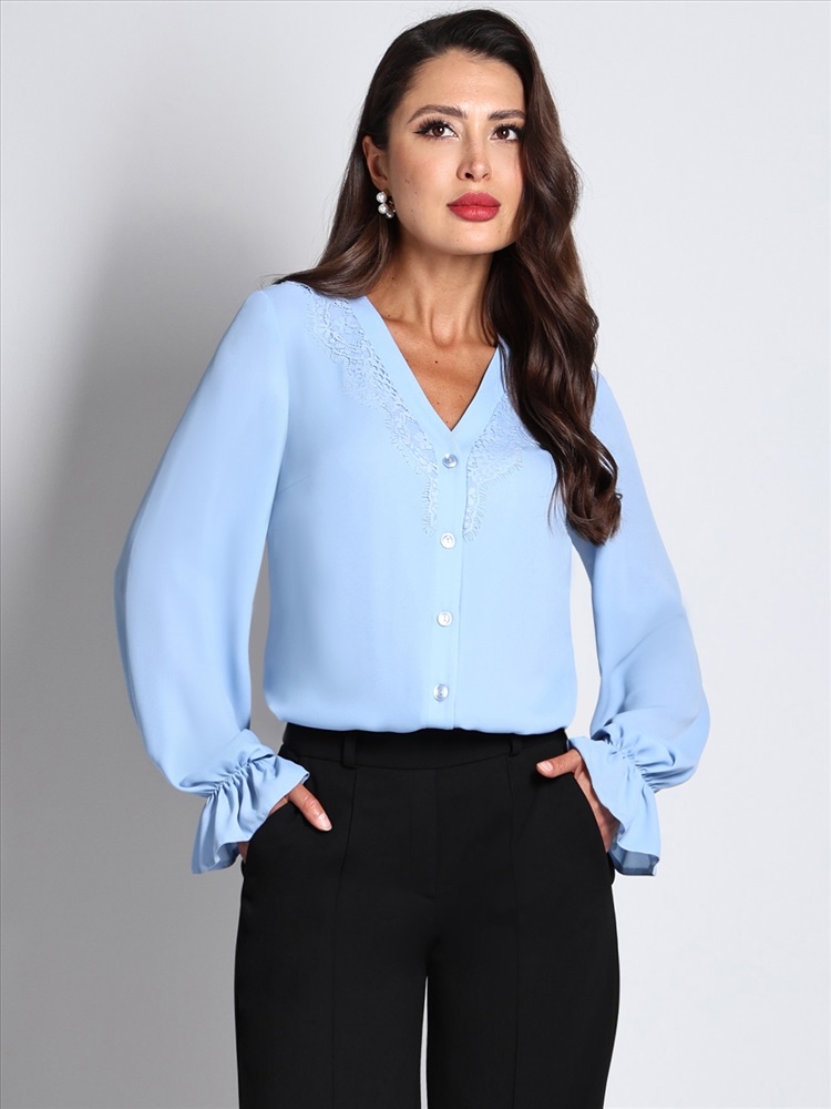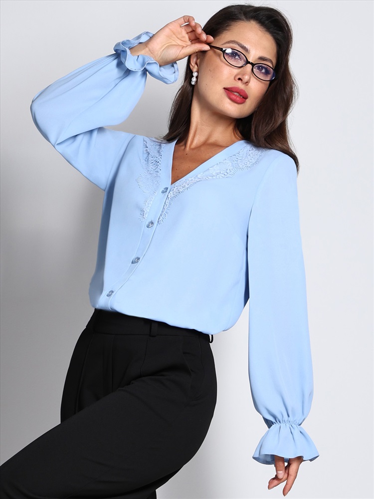 Блузка с объемными рукавами – это стильное и универсальное изделие, идеально подходящее для повседневной носки и создания элегантных образов. Выполненная из легкой и приятной на ощупь блузочной ткани, она обеспечивает комфорт и свободу движений в течение всего дня. V-образный вырез горловины украшен изящным кружевом, что придает блузке романтичный и женственный вид. Такой вырез подчеркивает линию шеи и декольте, добавляя образу изысканности. Одной из ключевых особенностей этой модели являются объемные рукава с резинкой на манжетах. Длинные рукава с объемом добавляют изделию воздушности и легкости, при этом резинка на манжетах фиксирует рукава на запястьях, создавая аккуратный и стильный вид. Это также позволяет легко поднимать рукава, если требуется больше свободы движений или если становится жарко. Блузка идеально подходит для сочетания с различными элементами гардероба. Она отлично смотрится как с юбками, так и с брюками или джинсами. Уход за блузкой требует бережной стирки при температуре 30 градусов. Это помогает сохранить первоначальный вид и качество ткани, а также продлить срок службы изделия.