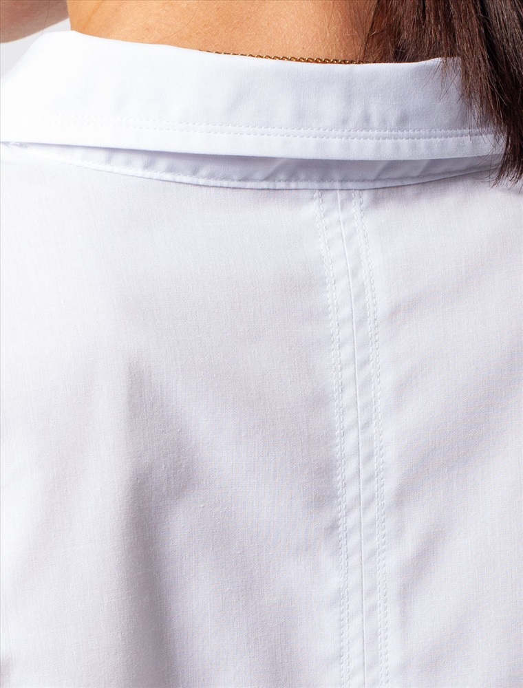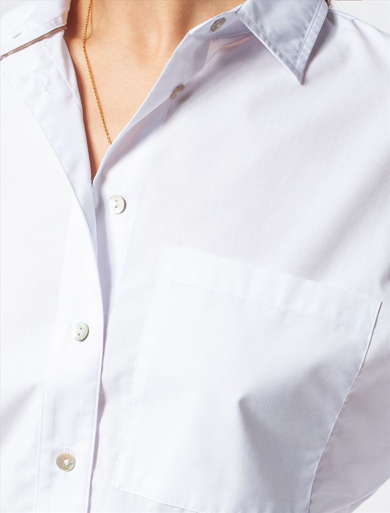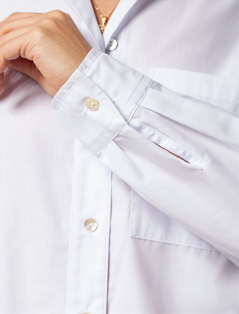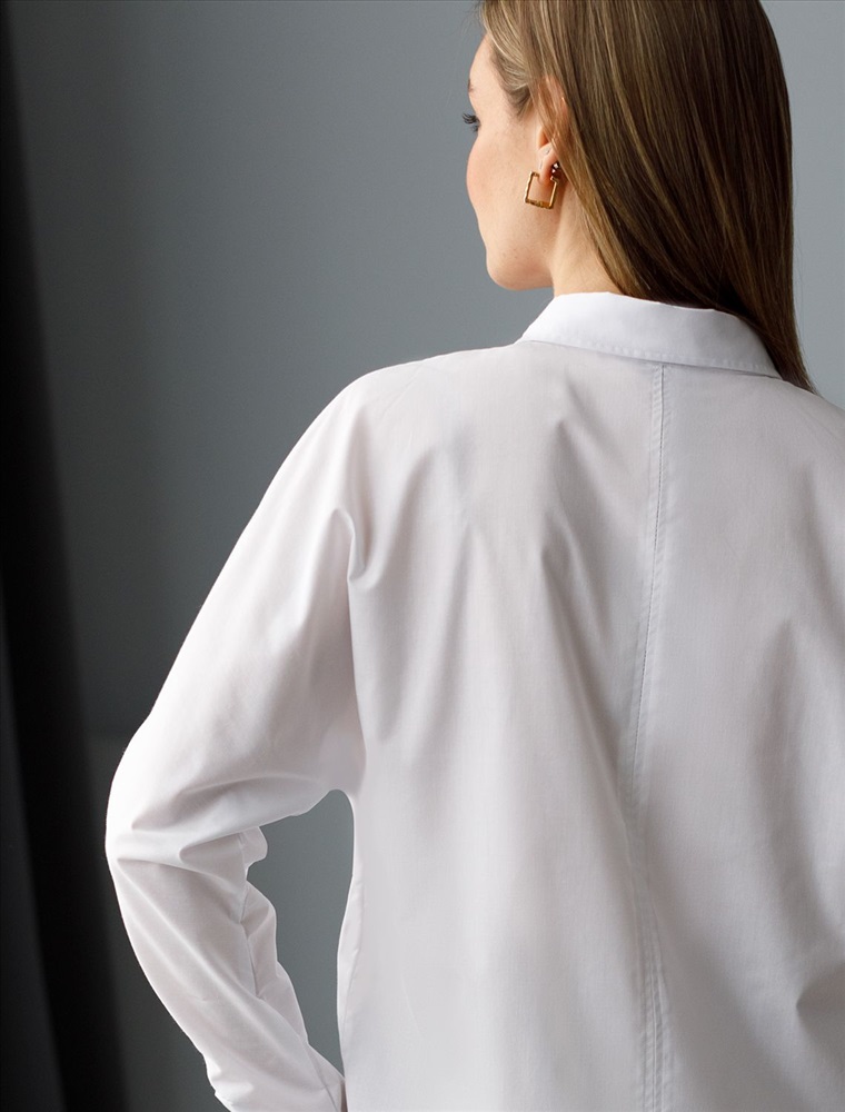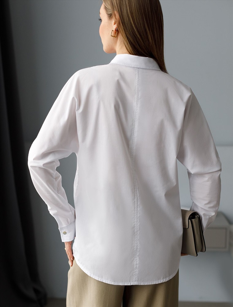 Параметры модели на первом фото: Рост 170, бюст 89, талия 63, бедра 92 Блузка с цельнокроеным рукавом выполнена из плотного хлопка с добавлением ПЭ. Материал приятно ощущается на коже и почти не мнется, долго сохраняя идеальный внешний вид. Пуговицы из натурального перламутра. На спинке изделия металлический логотип бренда. Комментарии к товару
