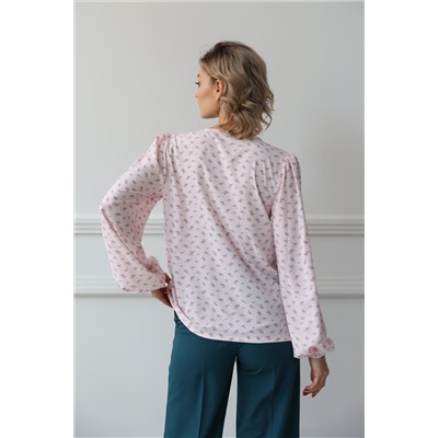 Блузка из soft шелка – стрейч прямого кроя с глубоким v-вырезом с застежкой на три пуговицы, втачными рукавами и резинкой по низу рукава.