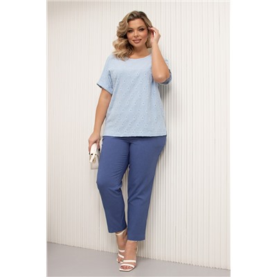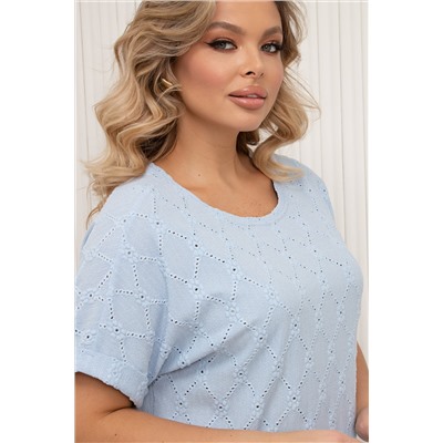 Красивая футболка прямого силуэта из трикотажного полотна. Короткие цельнокроеные рукава, оканчиваются манжетами на отворотах. Округлый вырез горловины. Низ ровный, по бокам разрезы.