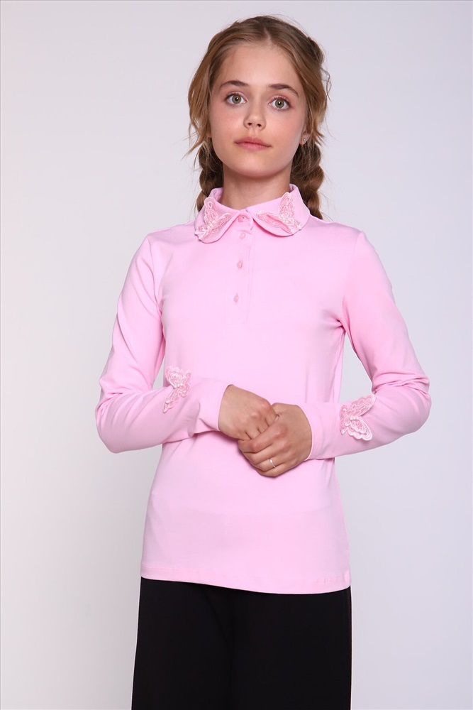 Элегантная и нарядная блузка для вашей маленькой принцессы! Нежная трикотажная блуза для девочки с кружевом станет замечательным выбором для 1 сентября. Ведь осень уже за углом и модная школьная форма для детей - это то, что совсем скоро понадобится каждому школьнику. Стильная кружевная кофта лонгслив от бренда JerseyLab - это хлопок, нежный трикотаж, который прекрасно дышит и не вызовет аллергию, идеальный вариант для школы для детей и подростков. Такая блузка с длинным рукавом отлично подойдет и как повседневная детская кофточка и как нарядная блузка на праздник или на выпускной. Она превосходно будет смотреться и с различными детскими юбками, и со стильными и удобными брюками. Также очень стильный образ можно получить, сочетая ее со школьным или классическим сарафаном или комбинезоном. Нежное кружево в виде бабочек придает изящность и оригинальность. Комбинируя эту блузу с различными жакетами и кардиганами, ваша маленькая модница сможет носить ее и в прохладное время года, как в демисезон так и в зимний период. Пусть ваша стильняшка всегда чувствует себя самой красивой, а мы позаботимся о ее комфорте и безопасности, производя самую стильную и качественную одежду для детей!