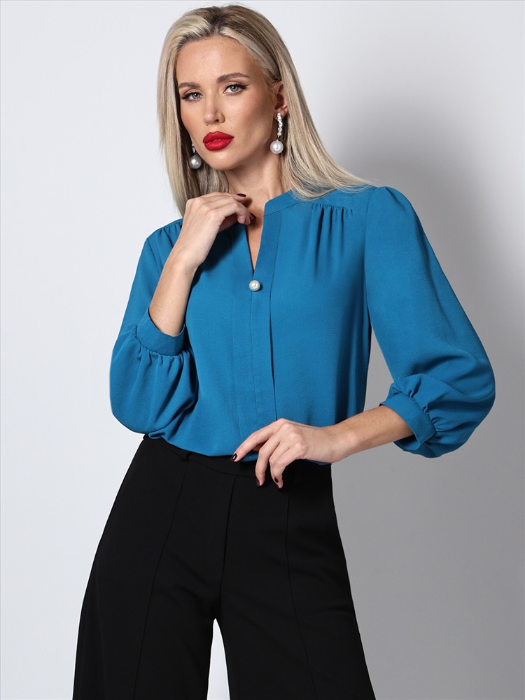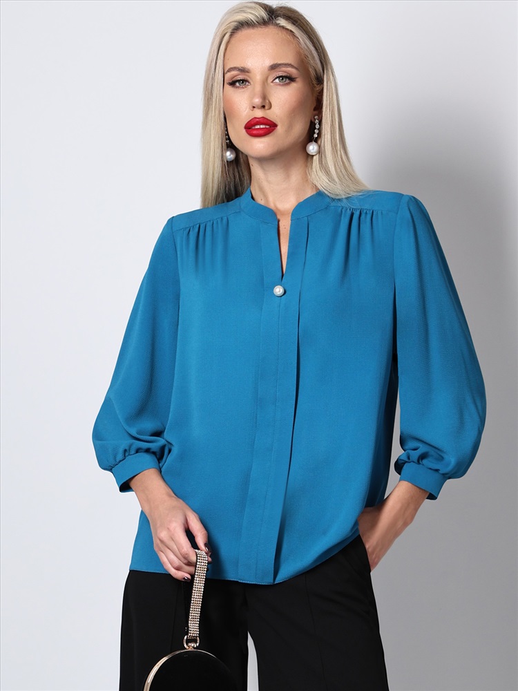 Декоративные элементы: Планка Вид застёжки: Без застежки Вырез горловины: Воротник-стойка Длина изделия по спинке: 65 Назначение: Деловой Тип рукава: 3/4 Уход за вещами: Бережная стирка при 30 градусах Фактура материала: Текстильный Состав: 100% полиэстер Тип ткани: креп Цвет: Сине-зелёный Женственная блузка на каждый день. Планки, имитирующие застежку, визуально делят фигуру и тем самым стройнят. Укороченный рукав с манжетом достаточно пышный, чтобы производить впечатление. Лучше всего будут смотреться в сочетании с юбками, но также можно носить ее навыпуск с брюками, а также длина позволяет гармонично дополнить ее поясом. Длина: 44 размер - 65 см 46 размер - 65 см 48 размер - 66 см 50 размер - 66 см 52 размер - 67 см 54 размер - 67 см 56 размер - 68 см Бережная стирка при 30 градусах Цвет изделия на фотографии может отличаться от фактического товара, что связано с искажением цветопередачи монитором, настройками фотоаппаратуры и прочими факторами Пропорции