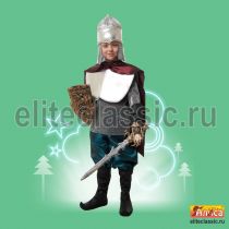 головной убор, накидка, джемпер, брюки, текстильная имитация обуви. В костюм не входит: щит, меч, защита на кисть руки. Производитель имеет право заменять ткань и отделку на равнозначную, с похожими рисунками. Потребительские свойства карнавального костюма и внешний вид образа сохранятся.