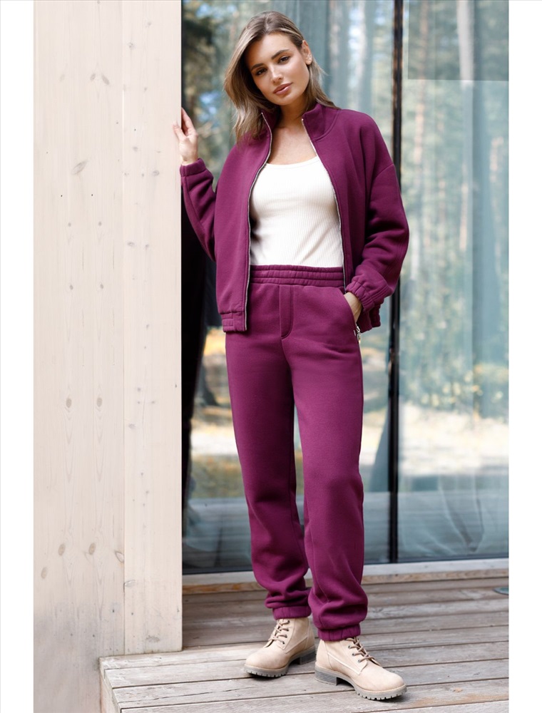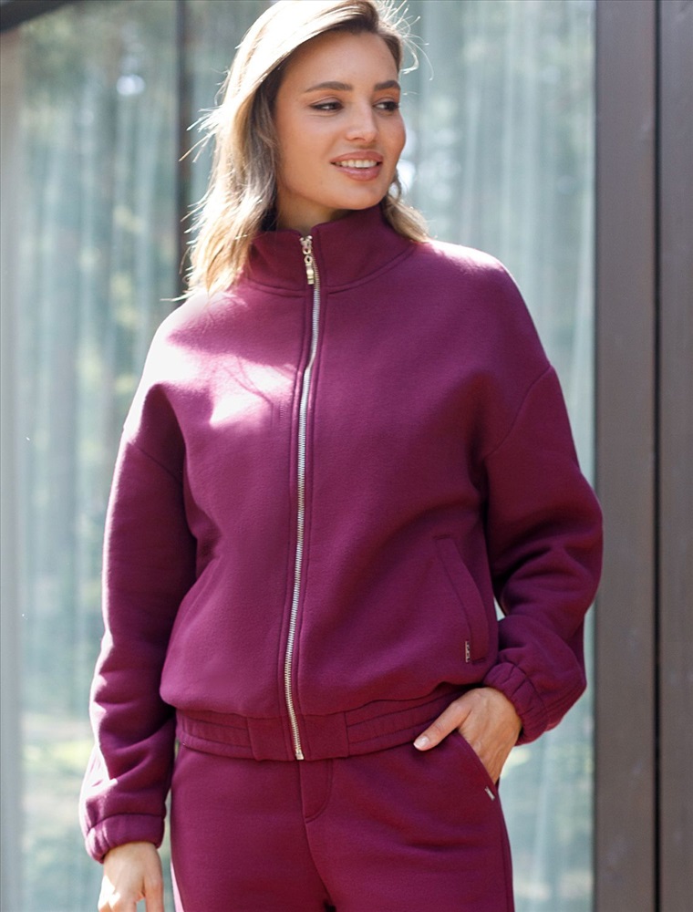 Размер товара на первом фото: 42 Теплый бомбер пурпурного цвета на молнии из футера трехнитки с начесом создан для максимального комфорта в любую погоду. Благодаря натуральному материалу и внутреннему мягкому начесу, повседневный бомбер приятно прилегает к телу и сохраняет тепло даже в прохладные дни. Серебристая фурнитура придает современный акцент, а воротник-стойка защищает от ветра и дополняет стильный внешний вид. Манжеты на рукавах и резинка по низу обеспечивают хорошую посадку по фигуре, предотвращая проникновение холода. Карманы позволяют удобно разместить необходимые мелочи или согреть руки во время прогулок. Спортивный бомбер отличается прочностью ткани, не теряет форму после стирки и долго сохраняет аккуратный первоначальный внешний вид. Модель отличается спущенной линией плеча, что обеспечивает удобную посадку и подчеркивает естественные контуры тела. Свободная толстовка на молнии подходит для любых размеров, отлично смотрится на большие параметры, подчеркивая достоинства фигуры. Комфортная длина делает образ более элегантным и универсальным — такой вариант легко комбинируется как с повседневной классической одеждой, так и со спортивными брюками D44.149 и D44.151. Подходит как для прогулок по городу, так и для активного отдыха, универсальный фасон этой кофты делает ее незаменимой в гардеробе любой женщины вне зависимости от сезона или трендов моды.