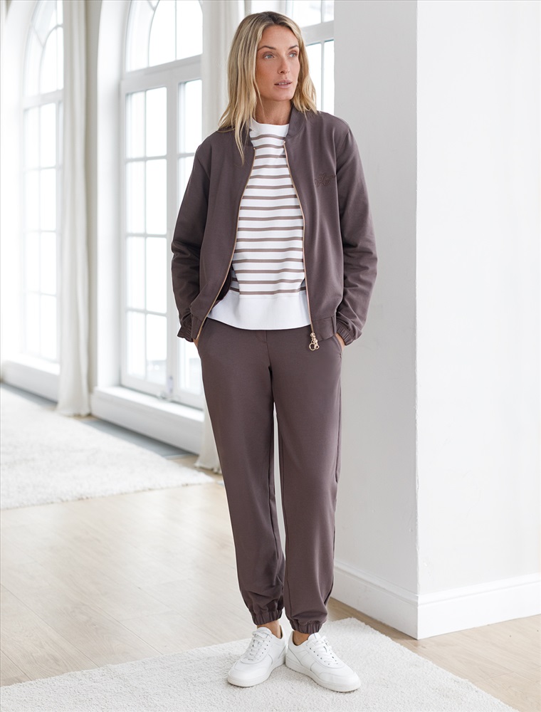 Плотность: 240 Г/м2 Бомбер кофейного цвета среднего объема на молнии с карманами из премиального футера двухнитки — это стильный выбор для ценительниц минимализма и комфорта. Натуральный состав обеспечивает дышащий эффект, мягкость и приятные тактильные ощущения, Эластичный материал позволяет свободно двигаться без лишнего стеснения, а также отлично сохраняет форму даже после длительного ношения. Манжеты на рукавах и резинка по низу обеспечивают надежную посадку, сохраняя тепло в прохладную погоду. Повседневный бомбер отличается аккуратным силуэтом без лишнего объема и универсальной длиной, которая идеально подходит для повседневного и спортивного образа. Прорезные карманы по бокам добавляют функциональности, сохраняя при этом стильный внешний вид. Бомбер из футера украшен деликатной вышивкой в виде эмблемы бренда, которая придает особый шарм и подчеркивает индивидуальность владелицы. Такой изысканный элемент декора гармонично сочетается с лаконичным дизайном, отвечая современным тенденциям моды. Так же на одном из карманов расположен небольшой металлический логотип бренда. Представленная размерная линейка позволяет подобрать оптимальный вариант для любой фигуры и размера, на маленький или плюс сайз, обеспечивая свободу движений без компромиссов по стилю. Этот легкий бомбер станет отличным дополнением к базовому гардеробу, сочетая практичность с элегантностью. Комментарии к товару