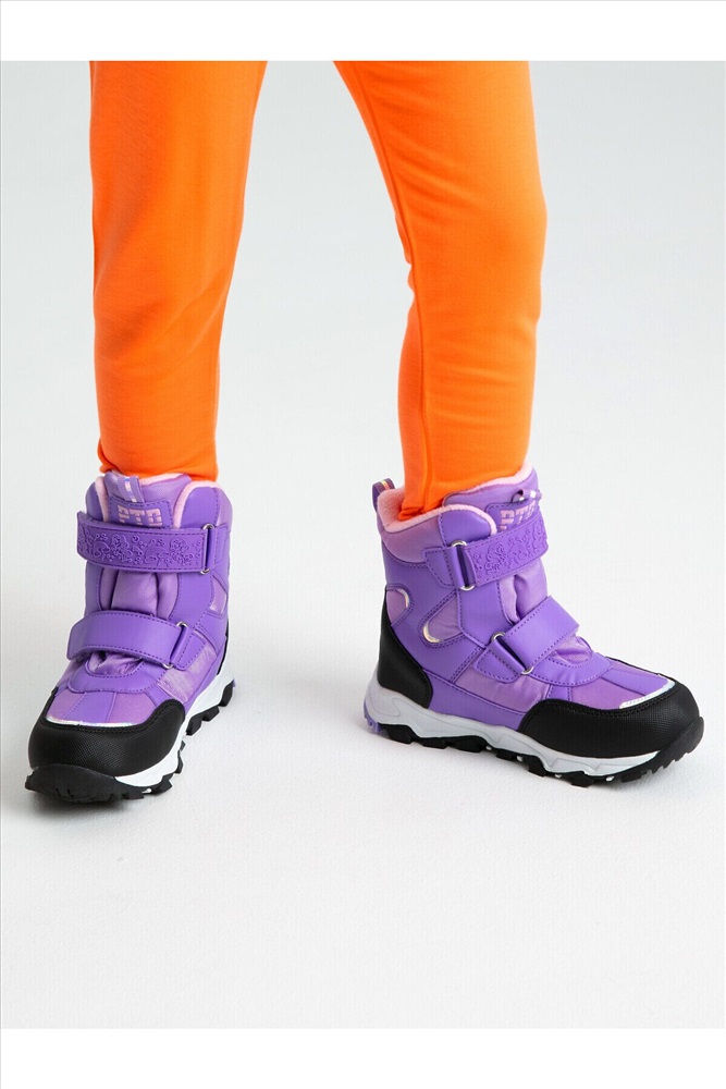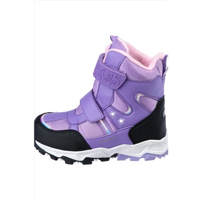 Конструкция верха изготовлена с использованием мембранных технологий. Усиленная защита носка и пятки специальными материалами. Подкладка и стелька выполнены из шерстяного меха 80%. Трехслойная стелька с фольгой, которая обеспечивает сохранение тепла в течение длительного времени. Формоустойчивый задник поддерживает стопу в правильном положении. Подошва имеет противоскользящий протектор. Удобная застежка-липучка. Модель со светодиодной подсветкой позволяет хорошо видеть ребенка даже в темное время суток. Рекомендованный температурный режим от 0°С до -20°С.
