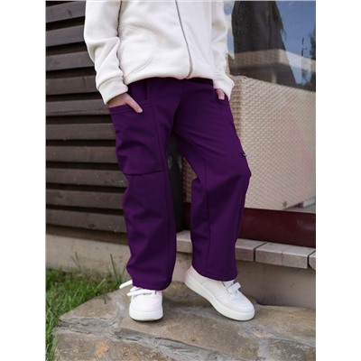 Брюки прямого силуэта из мембраны с флисовой подкладкой фиолетового цвета для девочки. Мембранное покрытие обеспечивает сохранение тепла и воздухообмен . Передние и задние половинки брюк с рельефами, в рельефные швы вставлены вместительные карманы , рельефы отстрочены отделочной строчкой. Пояс составной - передняя часть из основного материала, боковая и задняя часть пояса - из кашкорсе. Низ брюк прямой.