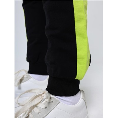 Изделие прямого кроя с манжетами. Пояс на резинке с завязками. На брюках присутствуют боковые карманы. Декоррировано изделие лампасами. Тип ткани-Футер 2-х нитка.