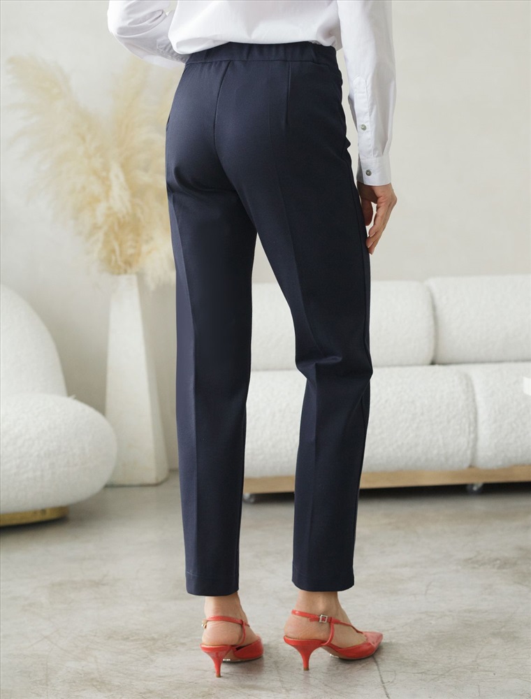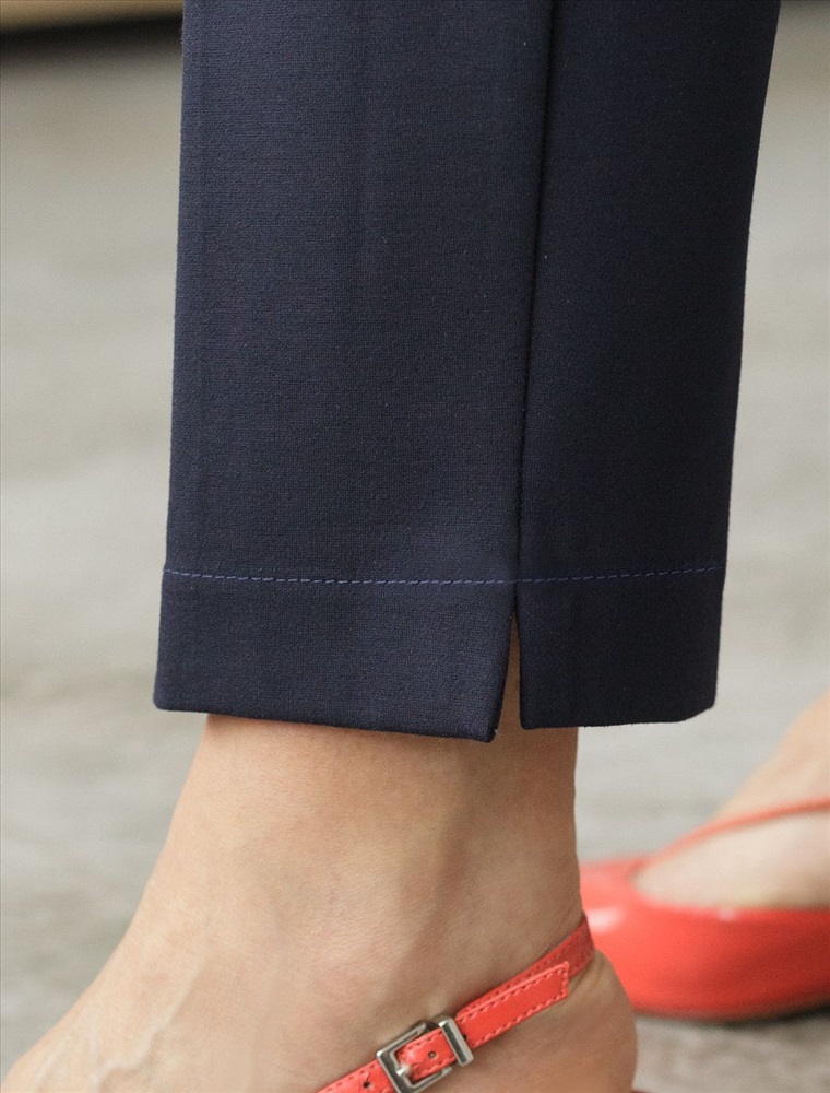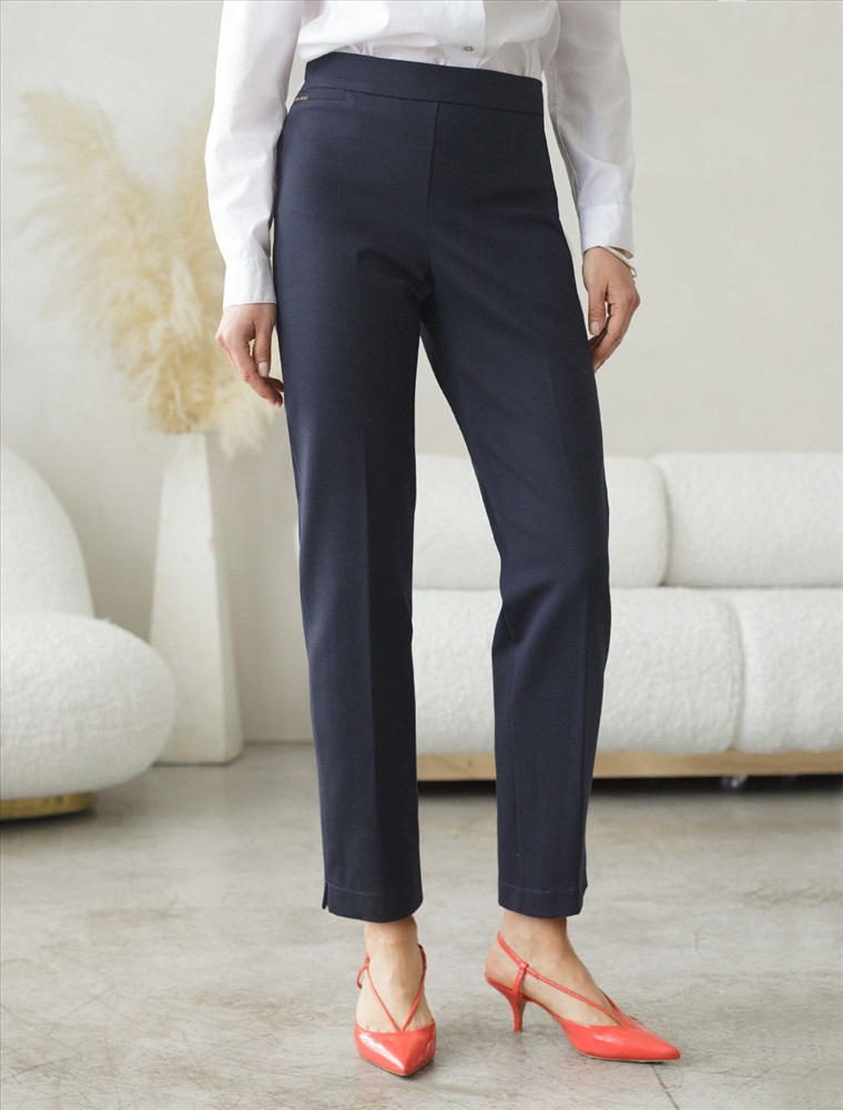 Плотность: 390 Г/м2 Брюки-дудочки выполнены из джерси. Модель дополнена резинкой сзади, одним вместительным карманом спереди и небольшими боковыми разрезами. Заутюженные стрелки и посадка на талии визуально вытягивают силуэт. Изделие хорошо держит форму, отлично тянется и почти не мнется во время использования. Идеальный вариант в офис или в повседневный классический стиль.