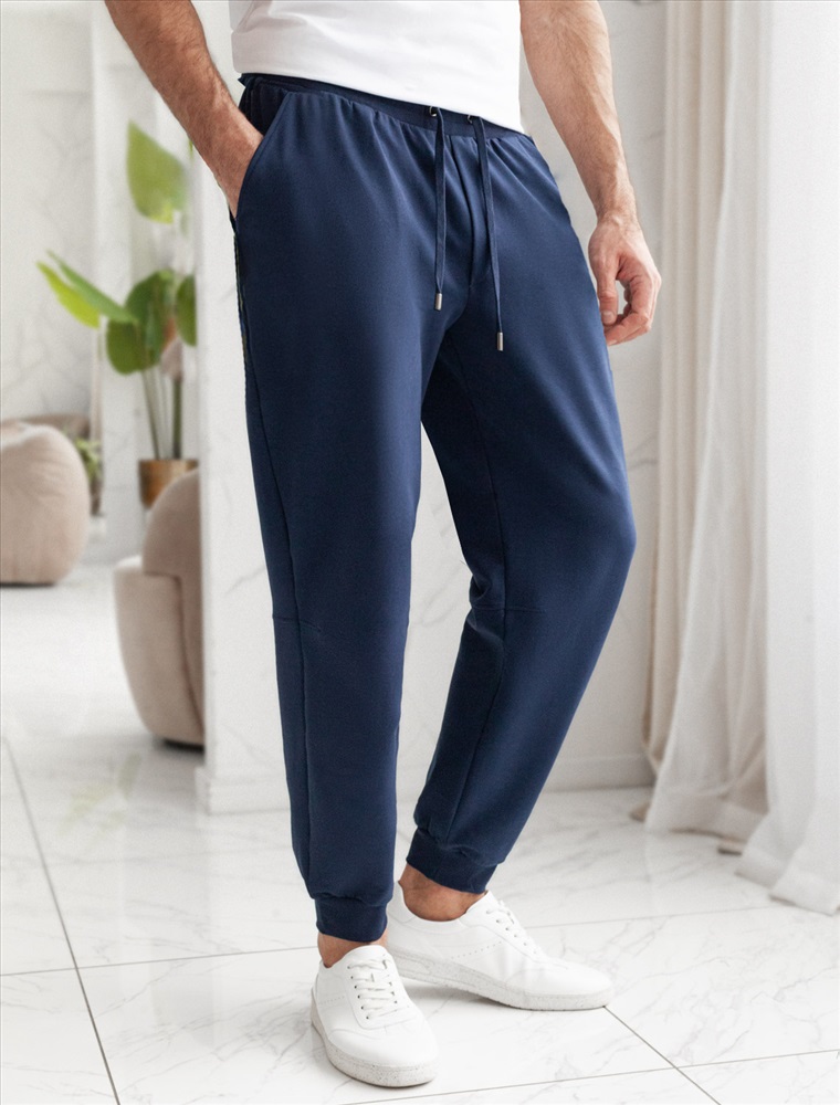 Брюки-джоггеры выполнены из эластичного футера. Изделие с двумя боковыми и одним задним карманом украшено логотипом бренда. Посадка регулируется шнуром, продетым в широкий эластичный пояс. Мягкий и плотный материал хорошо пропускает воздух, а наличие ПЭ в составе способствует формоустойчивости и легкости изделия. Сочетается в костюме с худи U49.039
