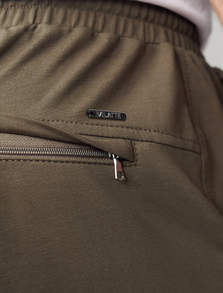 Трикотажные зауженные брюки отлично сочетаются с разными стилями одежды: от спортивного до кэжуал. Сочетайте в костюме с джемпером U49.043. Или в комплекте со свободной футболкой и джинсовой курткой на молнии. Это незаменимые джоггеры в современном гардеробе мужчины.