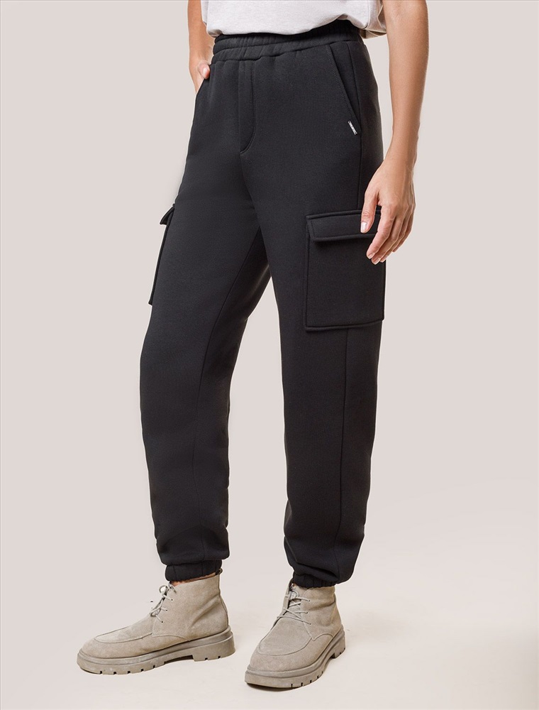 Эти функциональные брюки незаменимы для путешествий и спортивных занятий на улице. По бокам расположены большие карго карманы с клапаном, которые позволяют удобно хранить мелкие вещи под рукой. Спортивный стиль сочетается с элементами милитари, что делает трендовые брюки актуальными для современных тенденций.