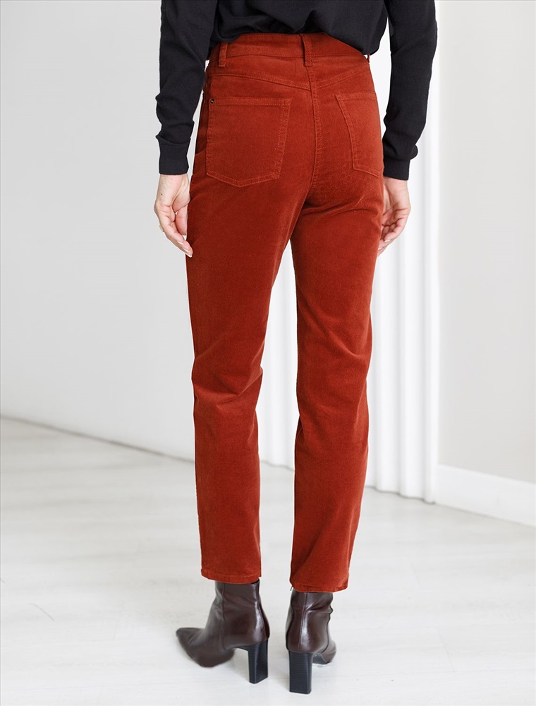 Размер товара на первом фото: 42 Вельветовые брюки женские зауженные в фасоне мом слим станут идеальным дополнением к теплому образу осенью и зимой. Они выполнены из мягкой хлопковой эластичной ткани, которая обеспечивает комфорт и защищает от холода. Модель с высокой посадкой отлично сидит на фигуре, представлен широкий размерный ряд. Также брюки подойдут невысоким девушкам и женщинам. Брюки скроют недостатки фигуры, вытягивают силуэт и удлиняют ноги, благодаря завышенной талии. Пять карманов, как у джинс, добавляют функциональности, а высококачественная фурнитура гарантирует надёжность. Актуальная однотонная расцветка позволит легко комбинировать штаны с другими вещами из гардероба. Брюки джинсы хорошо комбинируется с вязаным трикотажем, блузками и денимом. Как альтернатива классическим брюкам, в нестрогий офисный дресс-код.