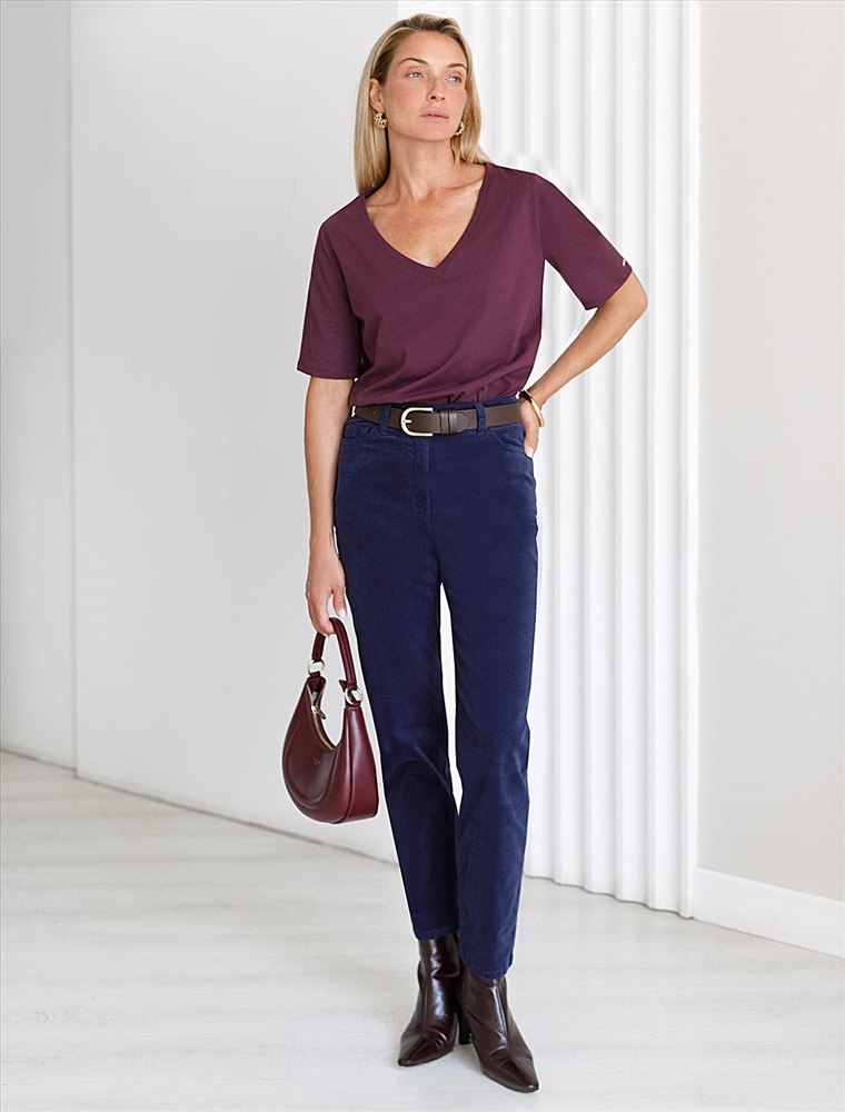 Плотность: 310 Г/м2 Размер товара на первом фото: 42 Вельветовые брюки женские зауженные в фасоне мом слим станут идеальным дополнением к теплому образу осенью и зимой. Они выполнены из мягкой хлопковой эластичной ткани, которая обеспечивает комфорт и защищает от холода. Модель с высокой посадкой отлично сидит на фигуре, представлен широкий размерный ряд. Также брюки подойдут невысоким девушкам и женщинам. Брюки скроют недостатки фигуры, вытягивают силуэт и удлиняют ноги, благодаря завышенной талии. Пять карманов, как у джинс, добавляют функциональности, а высококачественная фурнитура гарантирует надёжность. Актуальная однотонная расцветка позволит легко комбинировать штаны с другими вещами из гардероба. Брюки джинсы хорошо комбинируется с вязаным трикотажем, блузками и денимом. Как альтернатива классическим брюкам, в нестрогий офисный дресс-код. Комментарии к товару