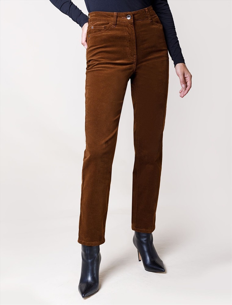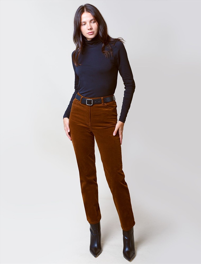 Размер товара на первом фото: 42 Вельветовые брюки женские зауженные в фасоне мом слим станут идеальным дополнением к теплому образу осенью и зимой. Они выполнены из мягкой хлопковой эластичной ткани, которая обеспечивает комфорт и защищает от холода. Модель с высокой посадкой отлично сидит на фигуре, представлен широкий размерный ряд. Также брюки подойдут невысоким девушкам и женщинам. Брюки скроют недостатки фигуры, вытягивают силуэт и удлиняют ноги, благодаря завышенной талии. Пять карманов, как у джинс, добавляют функциональности, а высококачественная фурнитура гарантирует надёжность. Актуальная однотонная расцветка позволит легко комбинировать штаны с другими вещами из гардероба. Брюки джинсы хорошо комбинируется с вязаным трикотажем, блузками и денимом. Как альтернатива классическим брюкам, в нестрогий офисный дресс-код.