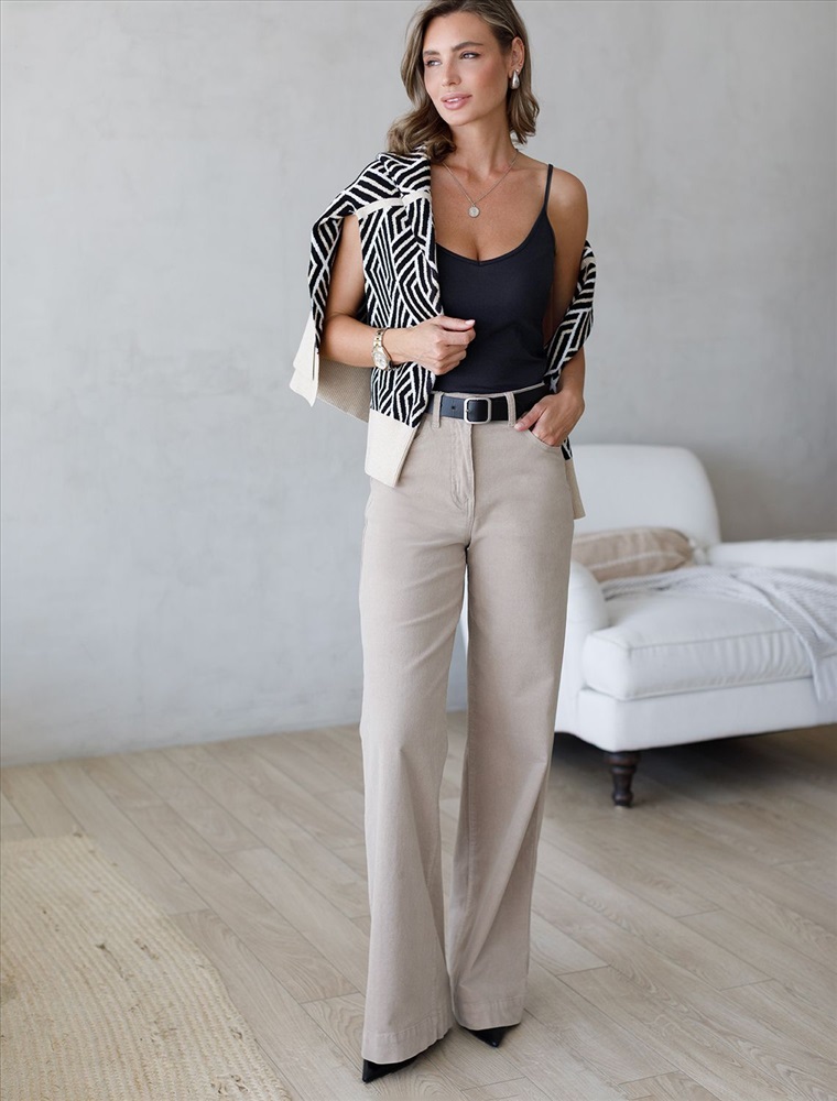 Плотность: 310 Г/м2 Размер товара на первом фото: 42 Брюки свободного кроя «трубы» выполнены из мягкого хлопкового микро-вельвета с добавлением эластана. Изделие комфортно садится по фигуре и не сковывает движения. Модель с пятью карманами, как у джинсов дополнена высококачественной фурнитурой с фирменным логотипом бренда. Идеально впишутся в повседневный образ, со свитером крупной вязки, курткой-косухой, ботинками на грубой подошве, челси и казаками. Комментарии к товару