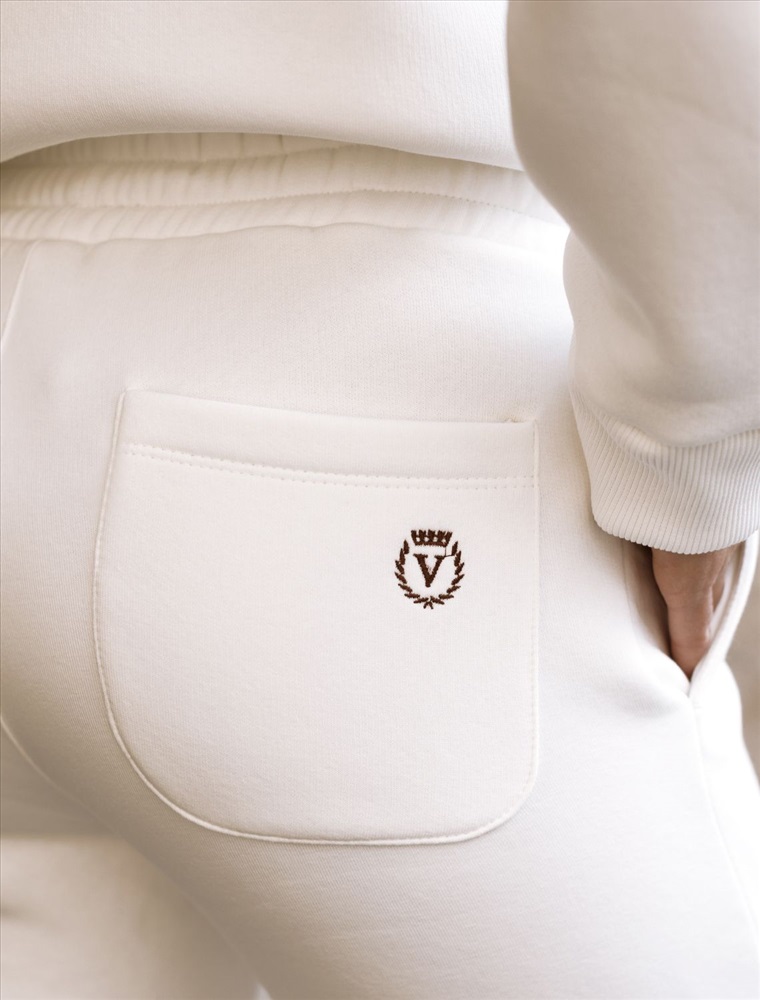 Брюки выполнены из премиального футера трехнитки с теплым начесом. Эластичный пояс на резинке регулируется хлопковым шнуром с золотистой фурнитурой. Модель дополнена боковыми карманами и одним задним накладным карманом с вышитым логотипом бренда. Манжеты внизу на мягкой резинке комфортно прилегают к ноге.