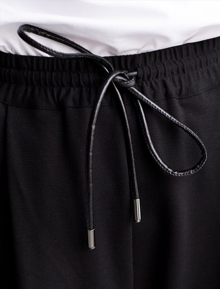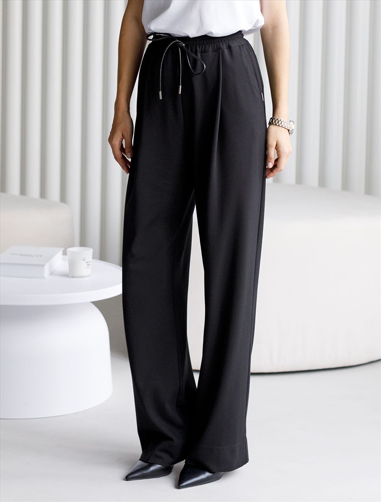 Плотность: 310 Г/м2 Параметры модели на первом фото: Рост 172, бюст 88, талия 64, бедра 88 Свободные брюки из трикотажного костюмного полотна. Эластичный пояс на резинке с регулируемым шнурком из эко-кожи комфортно фиксирует изделие на талии. Модель дополнена двумя боковыми и задним карманами. Комментарии к товару
