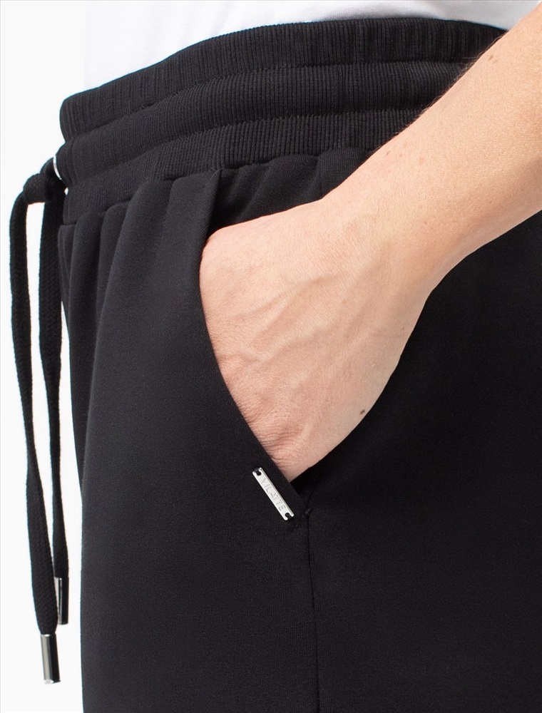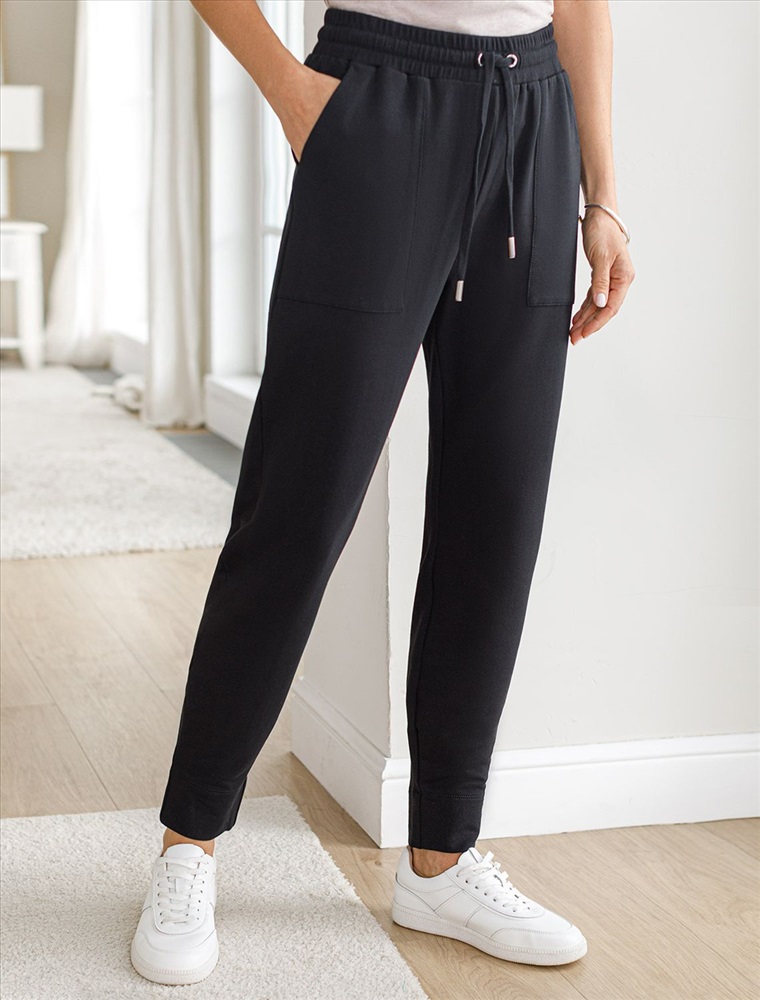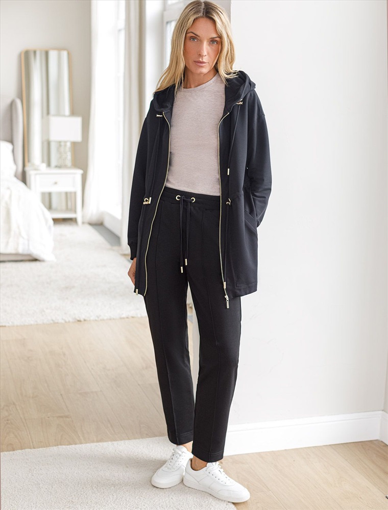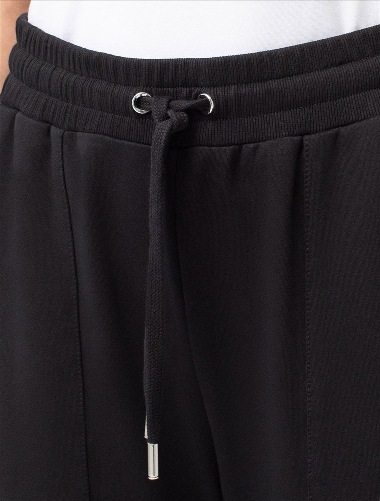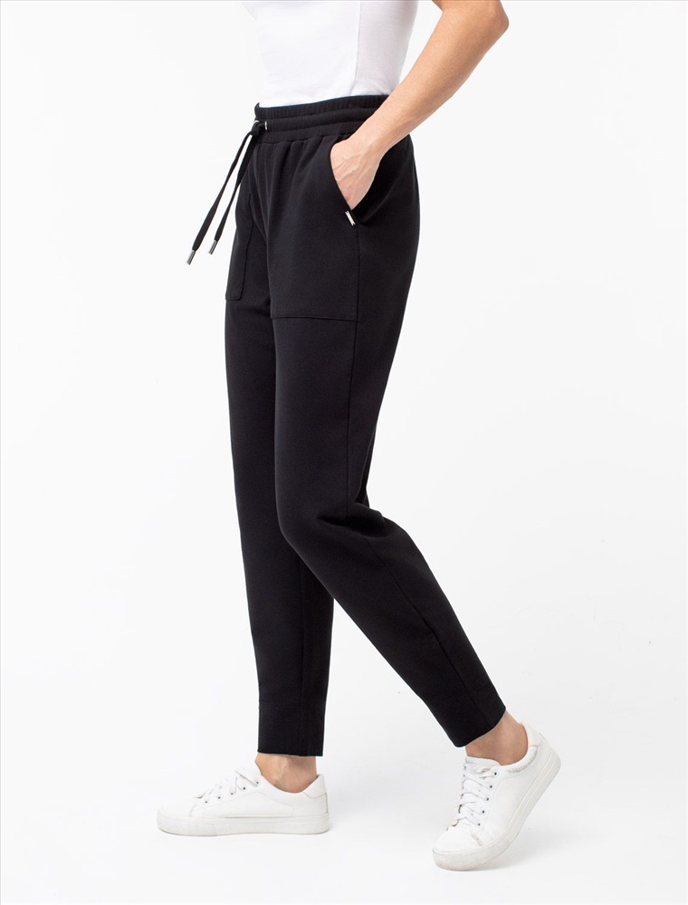 Плотность: 240 Г/м2 Параметры модели на первом фото: Рост 172, бюст 88, талия 64, бедра 88 Брюки выполнены из футера двухнитки с эластаном. Модель зауженная к низу дополнена карманами и эластичным поясом с фактурой в рубчик. В пояс вставлен плоский хлопковый шнур в тон изделия с серебристыми наконечниками. Изделие дополнено металлическим логотипом бренда. Сочетается в костюме с жакетом D49.078, джемпером D49.079, D49.080 и футболкой D49.081 Комментарии к товару