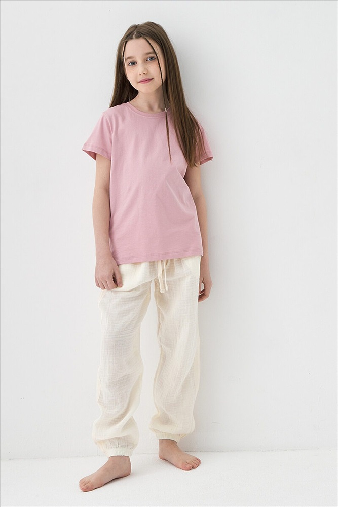 ID товара: 923655 Состав: 100% Хлопок Сезон: Осень/Зима Длина: Полная Фасон: Свободный крой Основная ткань: Муслин Стиль: Повседневный Страна бренда: Россия Страна производства: Узбекистан Брюки для девочки. Комментарии к товару