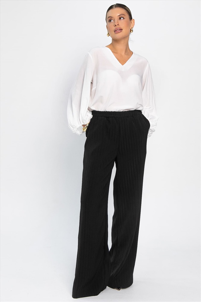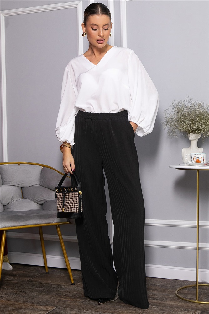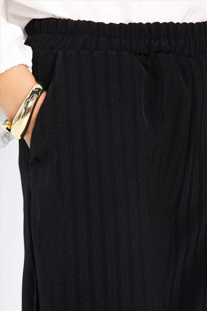 Цвет: черный Состав : 65% полиэстер, 30% вискоза, 5% эластан Материал : костюмный Цвет : черный Принт : полоска черная Карманы : есть Резинка в поясе : да Вид застежки : без застёжки Тип посадки брюк : высокая Пояс брюк : притачной Крой брюк : прямой Фасон брюк : классические Декоративные элементы : нет Длина готового изделия по внутреннему шву : 44-81 см, 46-81 см, 48-81 см, 50-81 см, 52-81 см, 54-81 см Длина готового изделия по боковому шву : 44-110 см, 46-110 см, 48-110 см, 50-110 см, 52-110 см, 54-110 см Отсняты с Б14423-12М Комфортные и стильные брюки с широким прямым кроем, идеально подходящие для повседневной носки. Эластичная резинка на поясе обеспечивает удобную посадку и свободу движений, а боковые карманы добавляют практичности и функциональности. Универсальный дизайн легко сочетается с разными топами и обувью, создавая модный и расслабленный образ на каждый день. Внимание! Рекомендуем ориентироваться на размерную сетку и выбирать свой привычный размер, согласно размерной таблице. *Допуск отклонения длины при массовом производстве 1-3 см является нормой. Уход за изделием: Ручная стирка или стирка в машине при температуре до 30 °C, деликатный режим. Не использовать отбеливатели. Разрешена глажка при температуре до 110 °C. При глажке использовать специальную насадку на подошве утюга, гладить с паром. Не замачивать и не выжимать. Стирать изделие наизнанку, отдельно от других вещей.