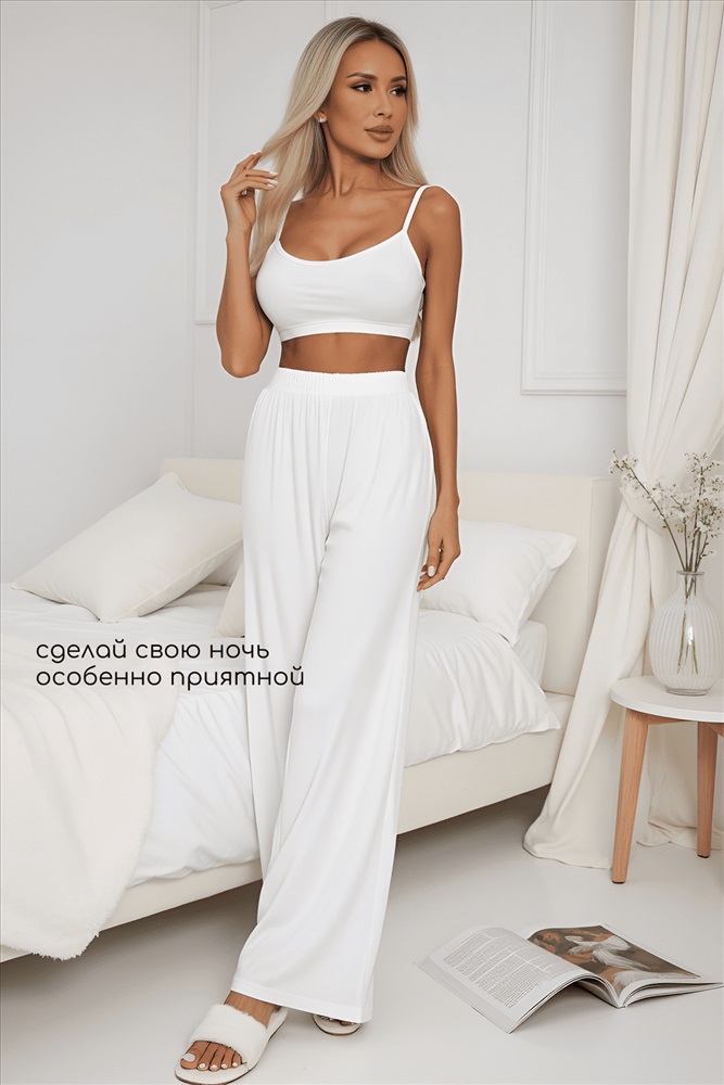 Брюки-палаццо для дома Шелк вискозы (молочные) Б14498-52М