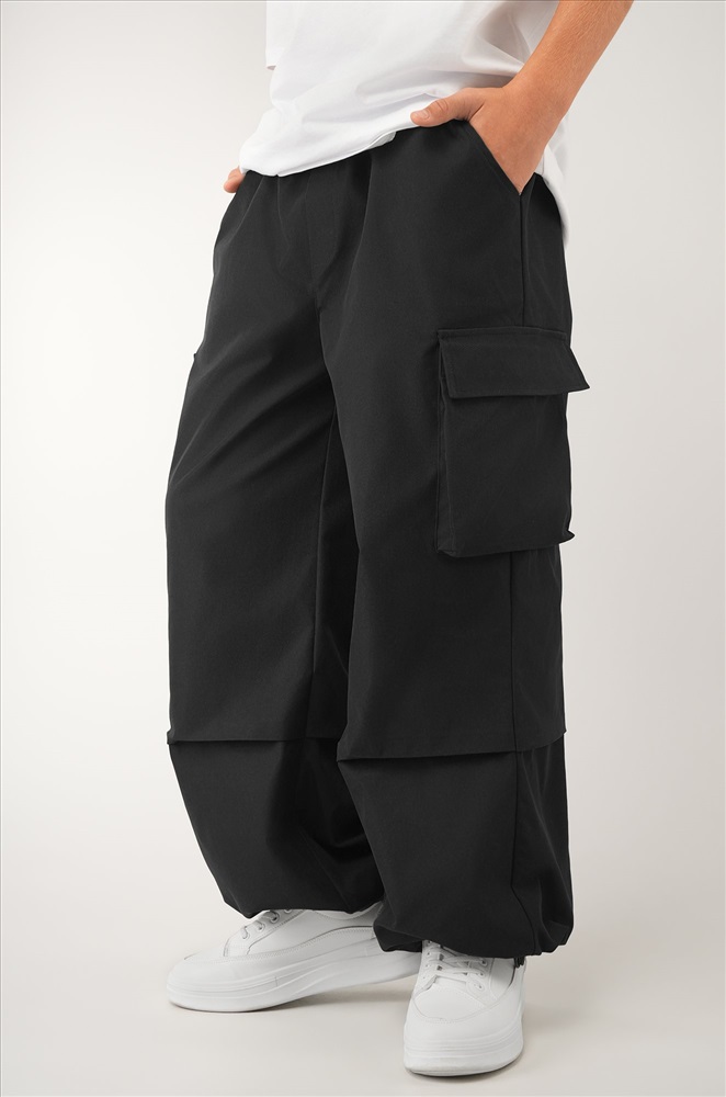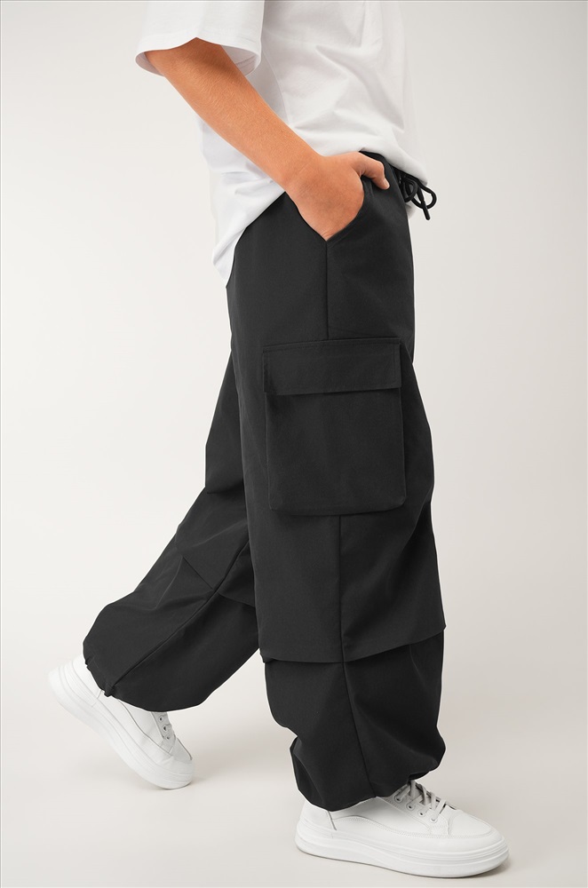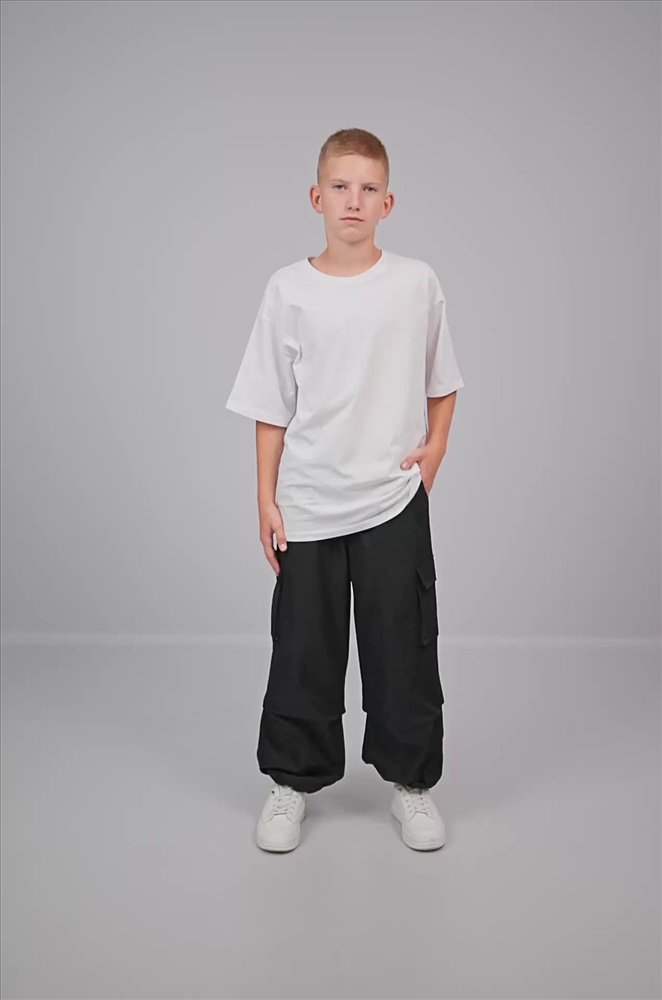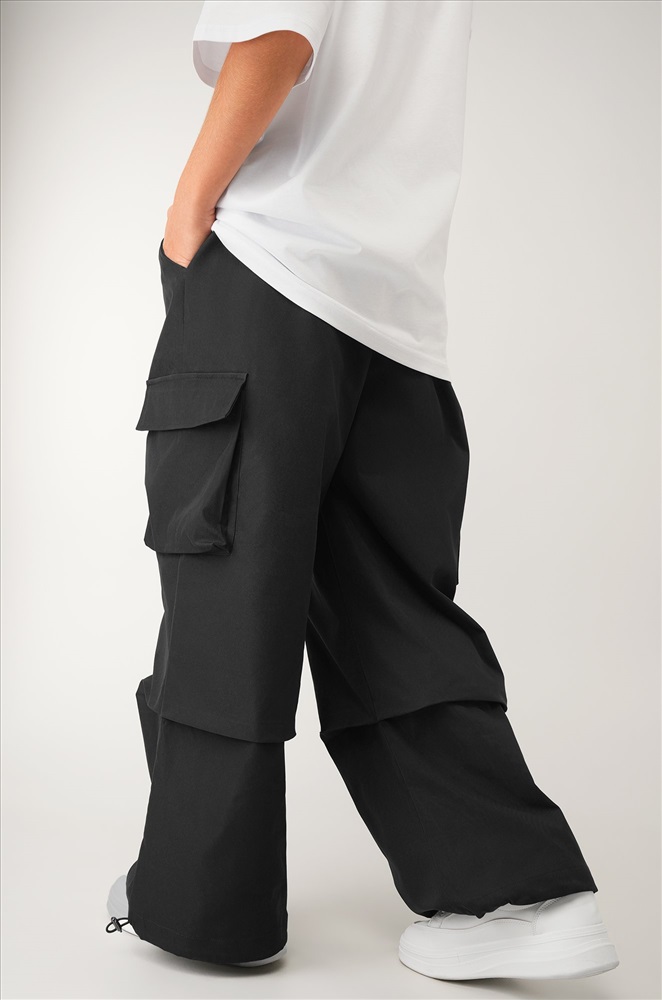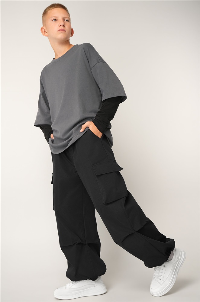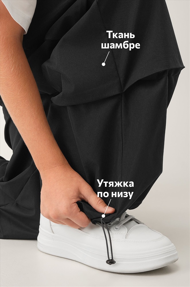 Свободный силуэт, уличный стиль и внимание к деталям — черные брюки парашюты созданы для мальчика, который ценит комфорт и самовыражение. Штаны идеальны для активных подростков и стильных образов.