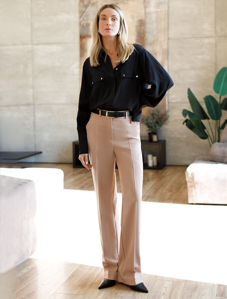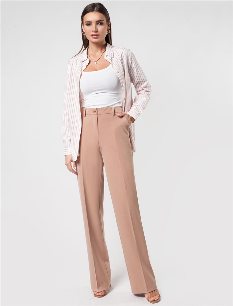 Брюки прямого кроя с – универсальный предмет весеннего гардероба. Высокая посадка и стрелки зрительно увеличивают рост и визуально стройнят. Ткань брюк: поливискоза с эластаном, гарантирует непревзайденный комфорт и формоустойчивость, хорошо тянется и не мнется. В таких брюках будет комфортно даже летом, благодаря наличию вискозы в ткани. Тело будет всегда дышать. Классическая длина отлично сочетается с обувью в любом стиле и подходит всем типам фигуры.