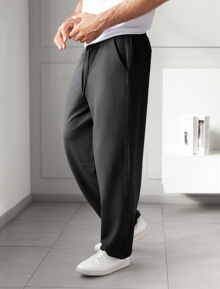 Плотность: 240 Г/м2 Размер товара на первом фото: 42 Свободные брюки черного цвета с эластичным поясом на резинке и шнуром с металлическим наконечником изготовлены из премиального футера двухнитки. Натуральная ткань, в составе которой хлопок и эластан, отличается дышащими свойствами и мягкостью на ощупь, обеспечивает комфорт и удобство в повседневной носке. Трикотажные брюки сохраняют свой первоначальный вид после многочисленных стирок, что делает их практичными для активного использования. Повседневные брюки дополнены карманами по бокам и одим задним карманом на молнии, что позволяет удобно хранить необходимые мелочи. Внизу расположены затяжки на стопорах, тем самым можно регулировать посадку под индивидуальные предпочтения каждого мужчины. Свободные штаны подходят для любого роста и размеров, включая большие, отлично сидят благодаря продуманному крою и функциональным деталям. Они универсальны — легко вписываются как в домашний гардероб, так и в уличный стиль, такой выбор станет отличным решением для парней, ценящих комфорт и стиль в повседневных вещах. Сочетайте их комплектом с футболками и свитшотами. Комментарии к товару