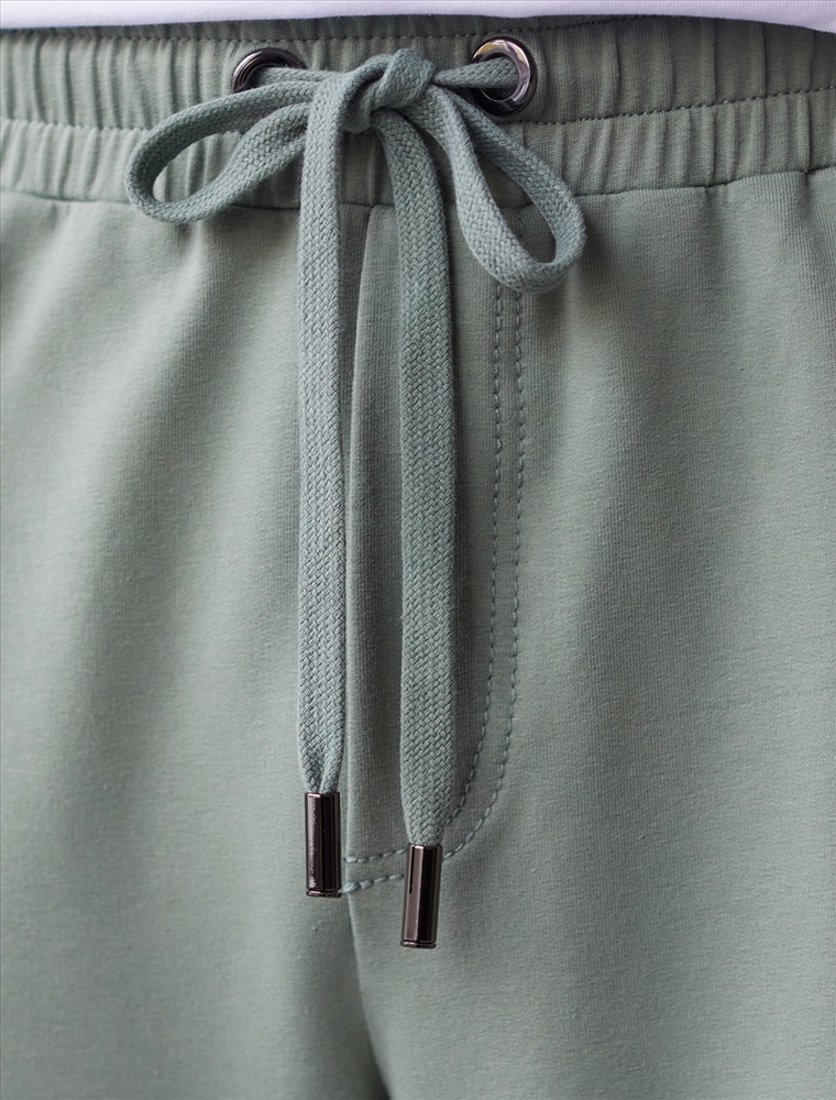 Плотность: 240 Г/м2 Размер товара на первом фото: 42 Свободные брюки светло-оливкого цвета с эластичным поясом на резинке и шнуром с металлическим наконечником изготовлены из премиального футера двухнитки. Натуральная ткань, в составе которой хлопок и эластан, отличается дышащими свойствами и мягкостью на ощупь, обеспечивает комфорт и удобство в повседневной носке. Трикотажные брюки сохраняют свой первоначальный вид после многочисленных стирок, что делает их практичными для активного использования. Повседневные брюки дополнены карманами по бокам и одим задним карманом на молнии, что позволяет удобно хранить необходимые мелочи. Внизу расположены затяжки на стопорах, тем самым можно регулировать посадку под индивидуальные предпочтения каждого мужчины. Свободные штаны подходят для любого роста и размеров, включая большие, отлично сидят благодаря продуманному крою и функциональным деталям. Они универсальны — легко вписываются как в домашний гардероб, так и в уличный стиль, такой выбор станет отличным решением для парней, ценящих комфорт и стиль в повседневных вещах. Сочетайте их комплектом с футболками и свитшотами. Комментарии к товару