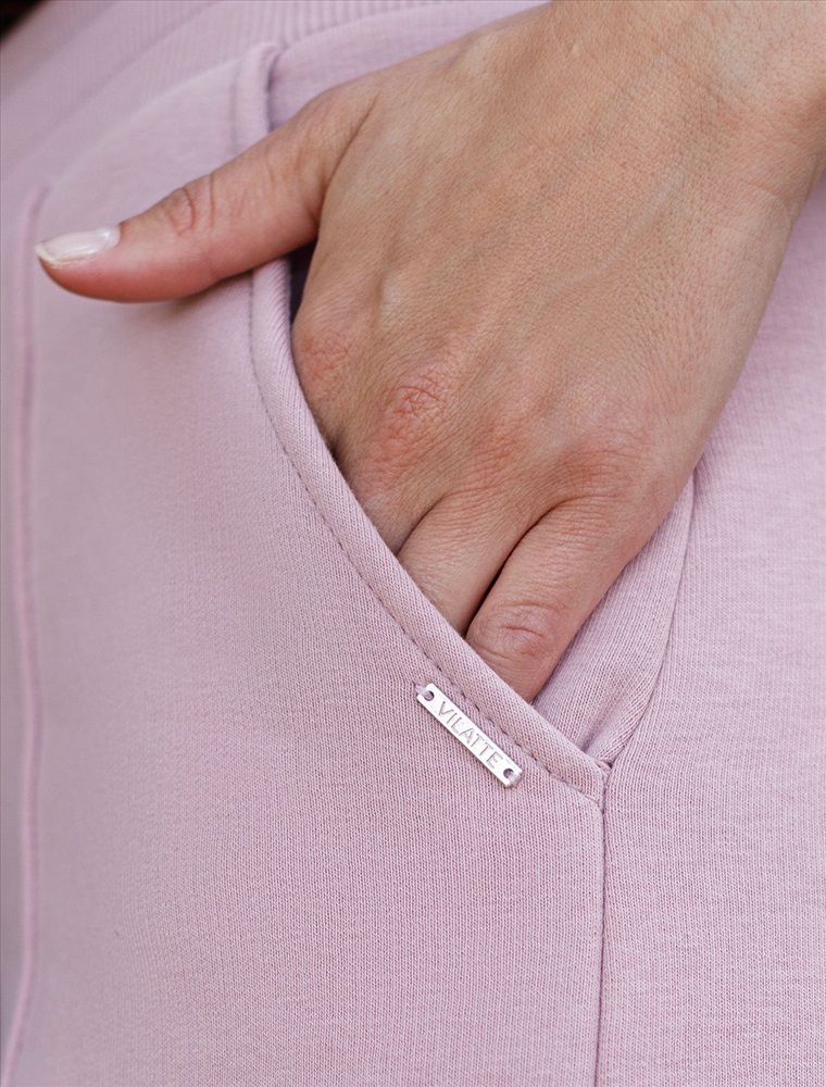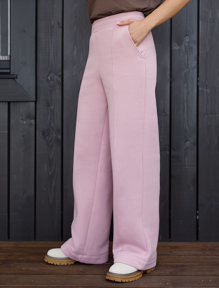 Плотность: 320 Г/м2 Размер товара на первом фото: 42 Сочетается с артикулами: D49.061, D49.102, D49.103 Теплые брюки прямого кроя с удобным поясом на резинке и карманами по бокам выполнены из премиального футера-трехнитки. Наличие эластана в составе гарантирует комфорт и долговечность изделия, материал хорошо пропускает воздух, позволяя телу дышать, а мягкий начес обеспечивает дополнительное тепло и комфорт в прохладную погоду. Эти уютные брюки пыльно-розового цвета созданы для вашего комфорта. Свободный прямой крой обеспечивает свободу движений и максимальное удобство в любых ситуациях, поэтому они подойдут и на большие размеры, а так же на высокий или низкий рост. Фигура подчеркивается, а силуэт визуально вытягивается за счет кроя палаццо и застроченных декоративных стрелок. В повседневных трикотажных брюках вы будете чувствовать себя комфортно и уверенно, наслаждаясь каждым моментом дня. Комментарии к товару