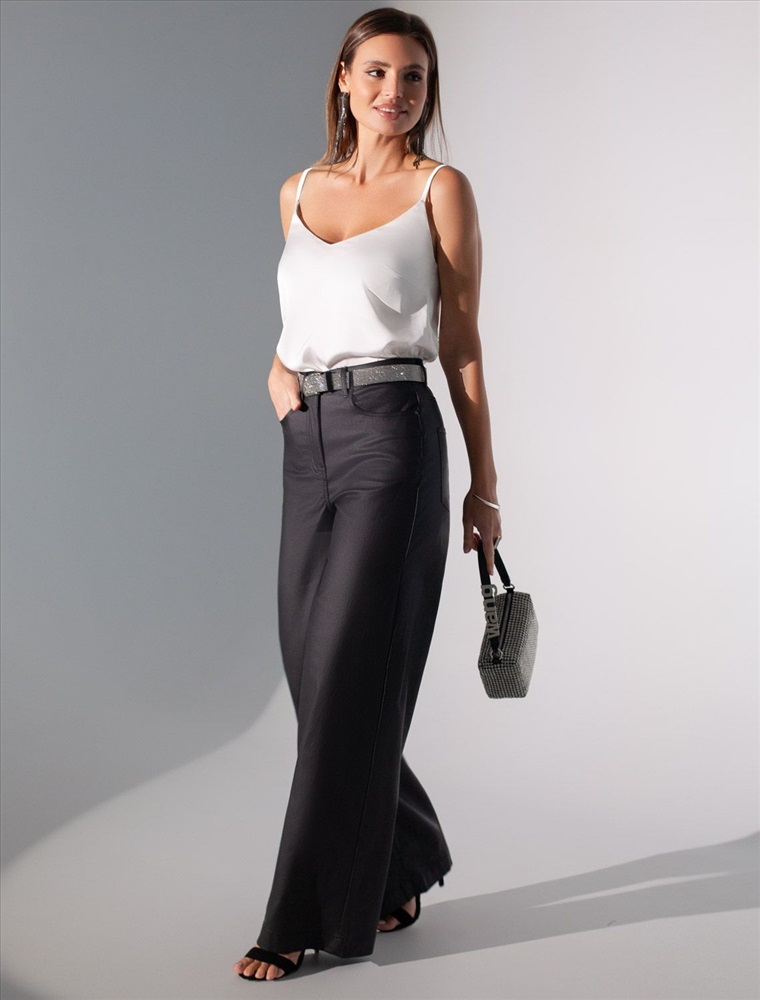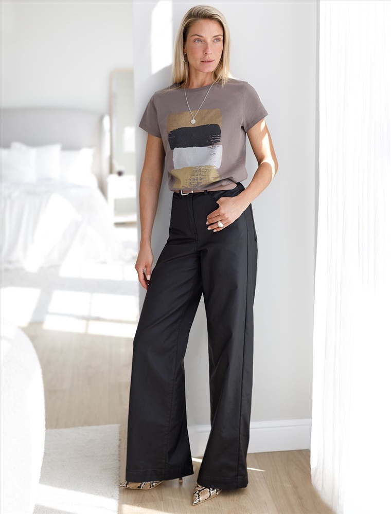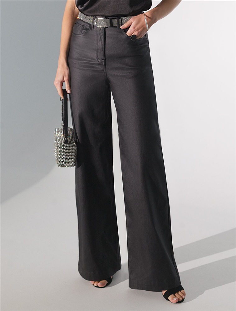 Брюки-трубы из эластичного хлопка с эффектом кожи