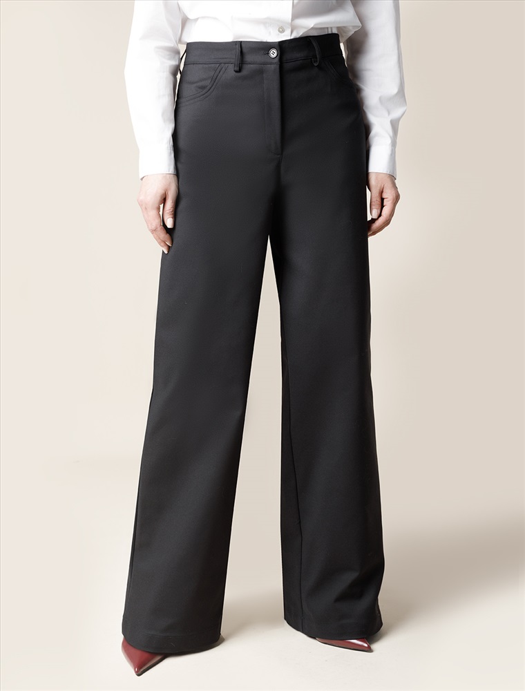 Брюки-трубы выполнены из плотной хлопковой эластичной ткани с добавлением нейлона. Любимая классика делового стиля, которая должна быть в любом гардеробе, так как такая вещь практична и многофункциональна. Для особого случая на важной встрече в паре с блузкой или для офисного дресс-кода с топом и жакетом. В повседневной жизни с более неформальным верхом и обувью на высоком или низком каблуке.