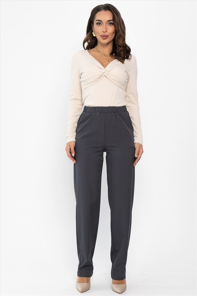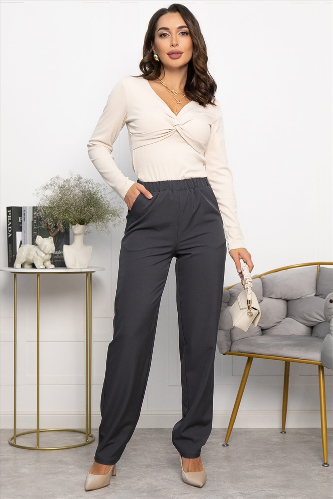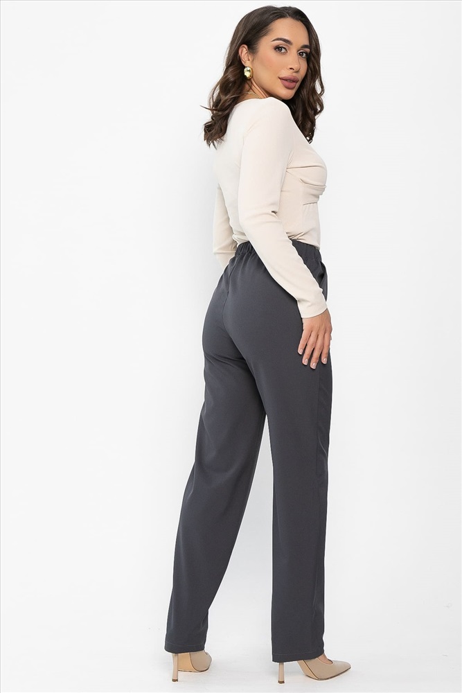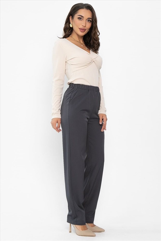 Классические брюки в красивом оттенке графит помогут вам в создании изящных официальных образов. Брюки по талии оснащены резинкой, что позволяет добиться комфортной посадки по фигуре. В боковых швах есть карманы. Брюки подойдут для офисного и повседневного образа. Они не сковывают движений и выглядят стильно и лаконично, вам останется только подобрать верх.