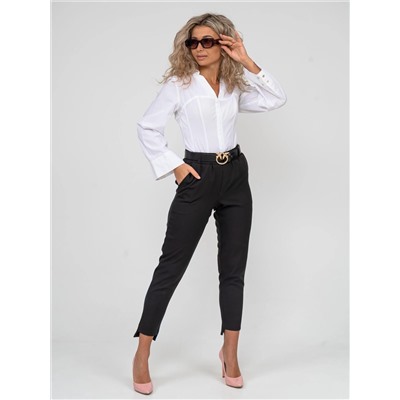 Цвет: черный Брюки женские полуприлегающего силуэта, с асимметричным низом. Спереди брюк есть карманы, верхний срез обработан поясом на резинки.