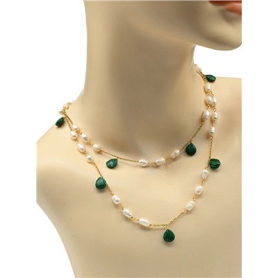 Бусы из жемчуга на цепочке с малахитом искусственным, 90см