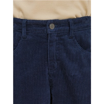 Брюки вельветовые в рубчик для мальчика. Брюки прямые актуального широкого силуэта - не будут сковывать движений ребёнка и подарят комфорт. По переду удобные боковые карманы, на спинке кокетка и накладные карманы для мелочей. Спереди брюки украшают оригинальные декоративные членения, создающие эффект брюк рабочего, сбоку декоративная петля из основной ткани - трендовые, стильные детали. Изделие застёгивается на молнию и пуговицу. В поясе со стороны спинки резинка, это обеспечивает идеальную посадку и прилегание. В поясе предусмотрена внутренняя регулировка ширины изделия по талии. Модель однотонная, без принта. Штаны неприхотливы в уходе. В составе ткани 100% качественного хлопка - брюки приятны на ощупь и великолепно пропускают воздух, давая коже ребёнка дышать. Модель представлена в модном тёмно-синем цвете. Тёмно-синие брюки легко сочетать с различными джемперами, футболками, свитшотами, худи, куртками. Размерная линейка: 3 (98); 4 (104); 5 (110); 6 (116); 7 (122); 8 (128); 9 (134); 10 (140); 11 (146). Замечательные брюки для мальчиков дошкольного и младшего школьного возраста, а также подростков. Брюки широкого кроя подходят для детского сада, прогулок, активного отдыха, а также для дома. Модель для круглогодичного применения: летом, осенью, зимой, весной и демисезон. Прекрасный подарок сыну, внуку, племяннику или брату на любой праздник.