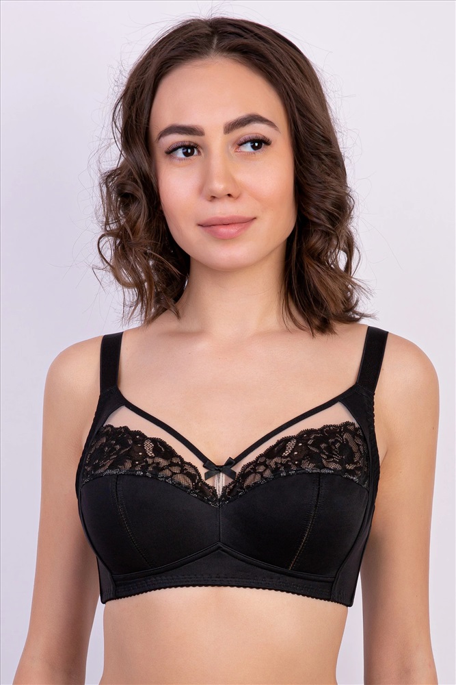 Классический бюстгальтер , выполнен из эластичного полотна, сетчатого трикотажного полотна, ламинированного материала и эластичного кружева. Модель с мягкой чашкой без каркасов. Маечный тип стана, хлопковая подкладка, упругие пластины в боковых деталях стана. Декоративный шов "мережка".