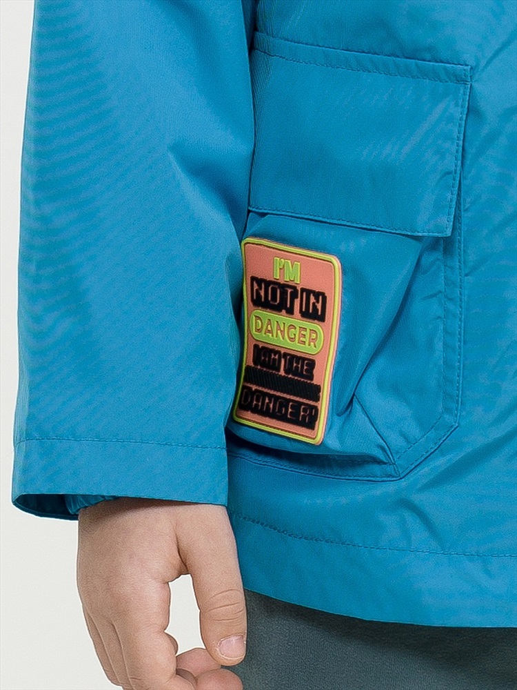 Ветровка для мальчиков свободного современного кроя, увеличенного объема и с мягкой спущенной линией плеча. Рекомендуемый температурный режим не ниже плюс 10 градусов. Цельнокроеный 2 шовный капюшон с улучшенной посадкой по форме головы. Регулировка объема капюшона шнуром, конец которого запаян в металлический наконечник, и пластиковым стоппером. Внутренний воротник из основной ткани. По переду и по спинке отрезные кокетки, имитирующие многослойность. Из-под кокетки выглядывает контрастная полоска ткани, придающая спортивность модели. Рукав объемный в верхней части, книзу заужен. Внутри рукава манжета из основной ткани с эластичной резиной внутри. Карманы накладные, объемные, с вытачками понизу, прикрываются клапанами без застежки. На кармане крупная силиконовая нашивка с шрифтовой композицией. Перевод Я не в опасности, я сам опасность. По низу изделия внутренняя регулировка объема эластиком с пластиковым стоппером. В шве кокетки и в боковых швах световозвращающая тесьма. Маркированный товар Товары ТМ Pelican отгружаются без скидок, все цены фиксированные от производителя. Обратите внимание: Товары ТМ Pelican находятся на удаленном складе. Как определить размер?Все таблицы размеров Pelican (откроется в новом окне)Комментарии к товару