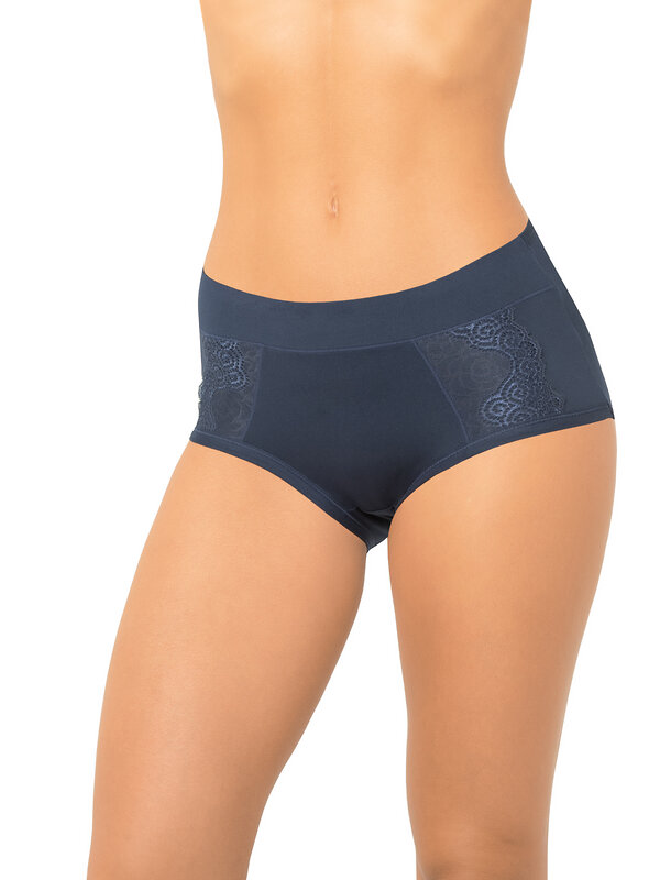 Трусы с высокой линией талии, выполнены из мягкого бамбукового полотна со спандексом. Вставка посередине передней детали дублирована основным полотном, что дает небольшой корректирующий эффект. Максимально комфортная обработка по ножке. Декор - кружевные ставки на передней детали. 1 шт в упаковке. Упаковка - картонная коробочка.