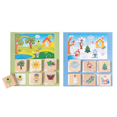 - деревянные фишки (32х32х10 мм) с картинками, соответствующими временам года – 24 шт.