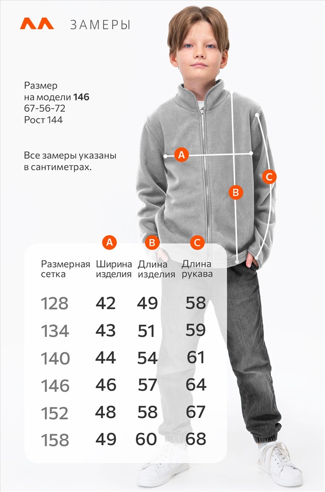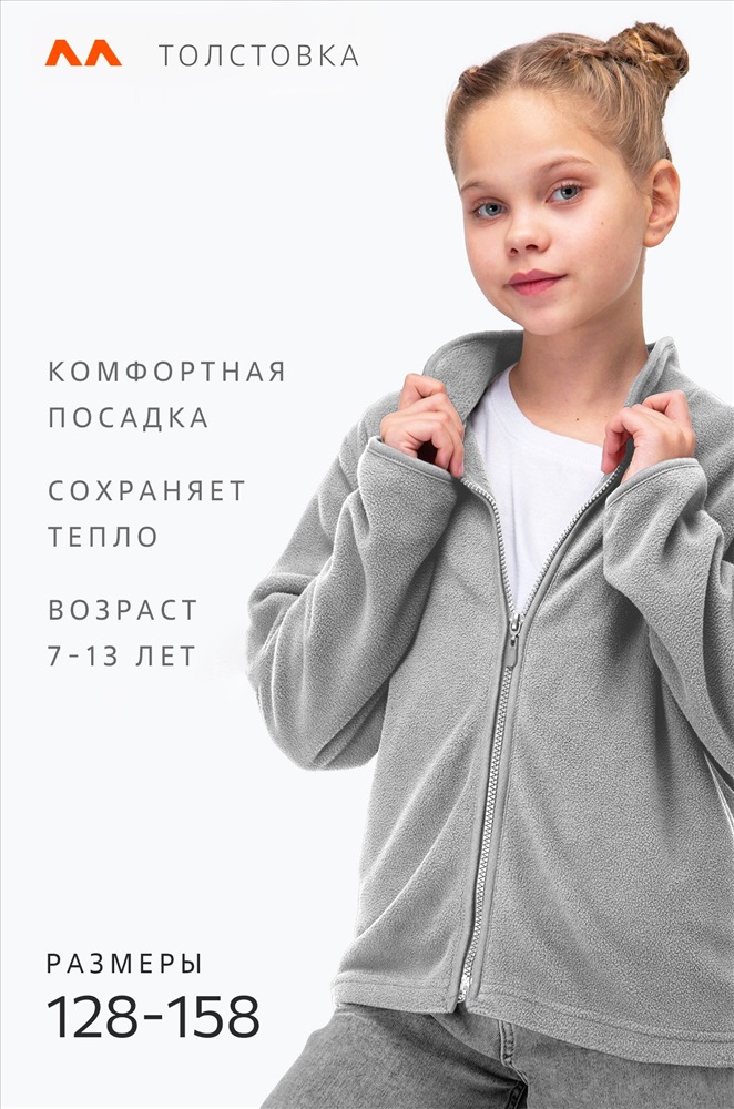 Преимущества: — серая флиска для детей и подростков мягкая и теплая, дарит комфорт и уют; — ткань на основе полиэстера прочная и износостойкая; — флисовый джемпер не требует глажки и быстро сохнет. — кофта на молнии удобна в использовании, легко надевается и снимается; — воротник стойка защищает шею от ветра и холода; — прямой крой дарит свободу движений и комфорт; — детская кофта на замке подходит для весенних и осенних прогулок; — стильная и аккуратная модель без карманов, идеально смотрится в повседневных образах; — теплая кофта из флиса проста в уходе, допускается машинная стирка при 30–40 °С. Внимание: не сушить толстовку в сушильной машине! Мальчик, его рост 144 см. Параметры: объем груди 65 см, обхват талии 56 см, обхват бедер 69 см, на нем толстовка в размере 146. Девочка, ее рост 140. Параметры: объем груди 67 см, обхват талии 56 см, обхват бедер 77 см. На ней толстовка в размере 140.