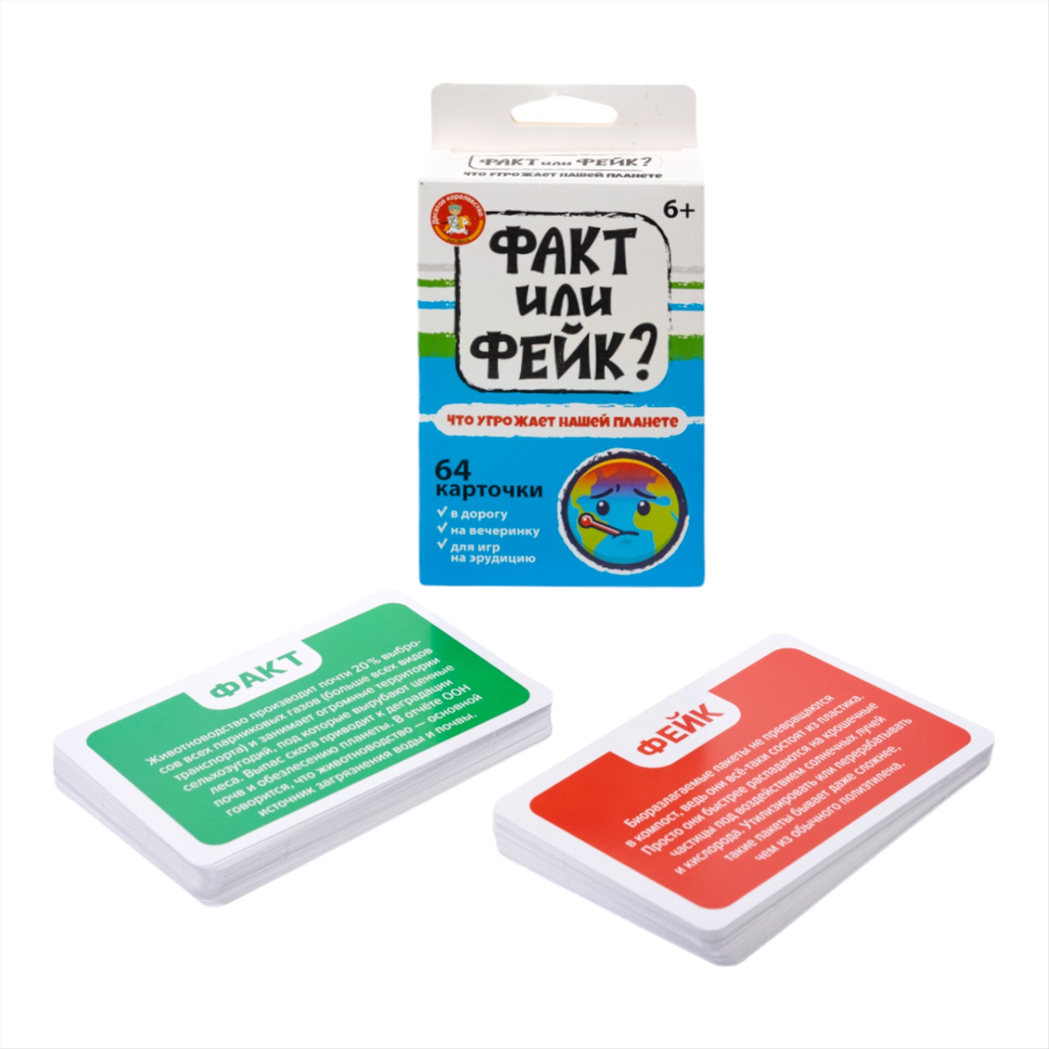 Детская настольная игра для большой компании Факт или Фейк «Что угрожает нашей планете» - это увлекательная игра в "походном" формате, которую можно взять с собой на вечеринку, в гости или в дорогу. С этой игрой вы можете проверить свой уровень знаний в сфере экологии и защиты окружающей среды.