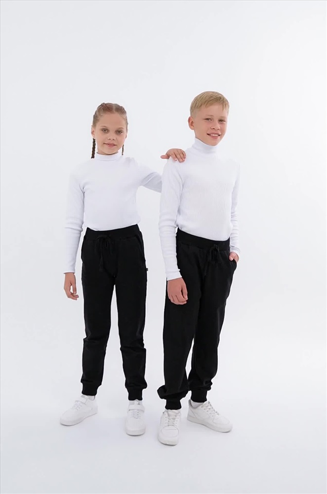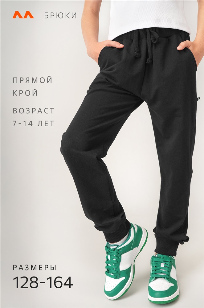 Теплые спортивные брюки джоггеры для девочек, мальчиков и подростков выполнены из мягкой и приятной к телу 100% хлопкового футера с начёсом. Благодаря свободному крою и эластичному поясу детские штаны не стесняют движения. Модель с высокой посадкой, талия по ширине дополнительно регулируется шнурком, по бокам расположены удобные карманы. Натуральный хлопок хорошо пропускает воздух и дарит комфорт в течение всего дня. Начес удерживает тепло, а трикотажные манжеты не пропускают внутрь холодный воздух. Однотонные черные брюки идеально подойдут для составления осенних и зимних образов в стиле sport casual (спорт кэжуал). Трикотажные брюки подойдут для прогулок. Утепленные подростковые штаны – прекрасный вариант на холодную осень и зиму. Модель Ярослав, его рост 150 см, параметры: 75-63-75 см. На нем размер 152. Модель Милана, ее рост 141 см, параметры: 62-56-77 см. На ней размер 140.