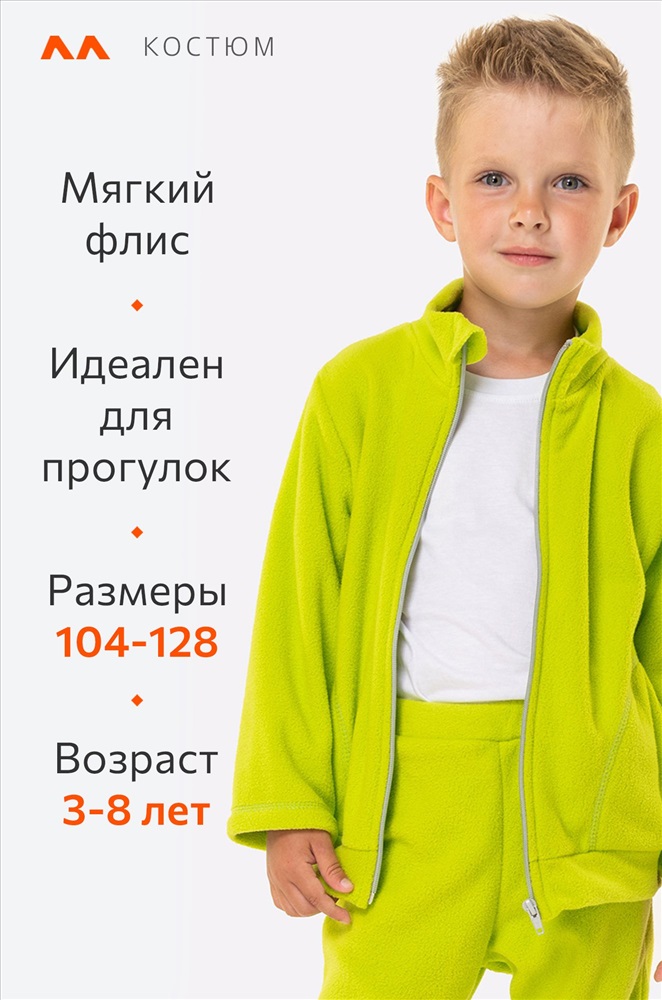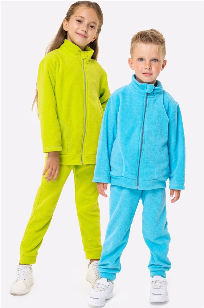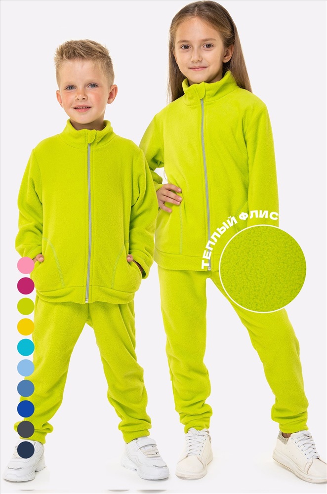 — салатовый костюм из флиса приятен к телу, отлично сохраняет тепло;