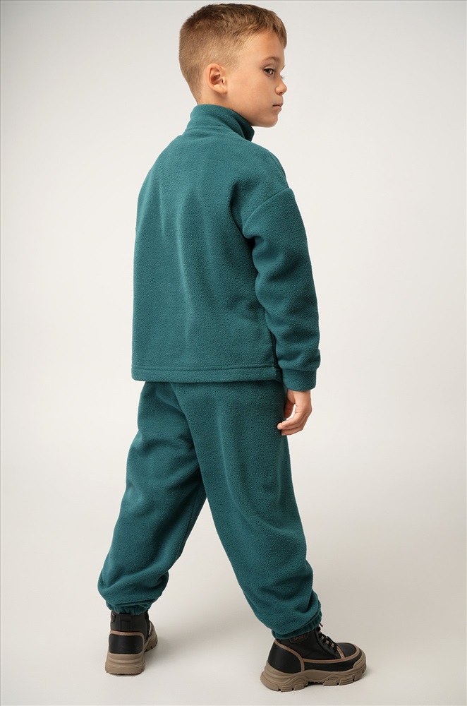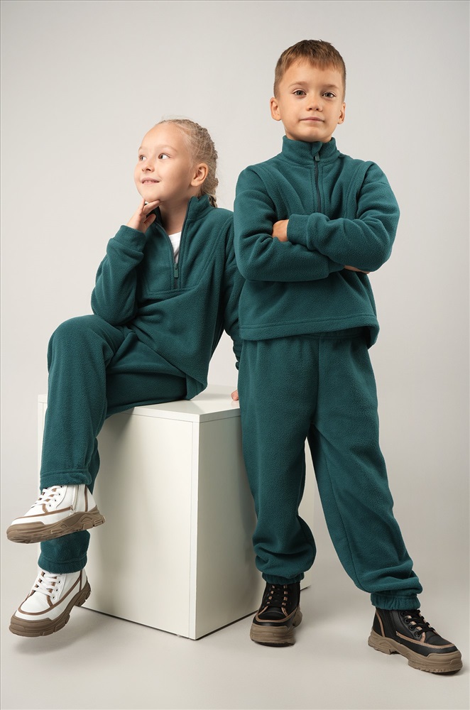 Зелёный детский костюм для мальчиков и девочек создан, чтобы зима проходила тепло и комфортно. Флисовый костюм выполнен из плотной мягкой ткани, которая бережно сохраняет тепло и приятно ощущается на теле.