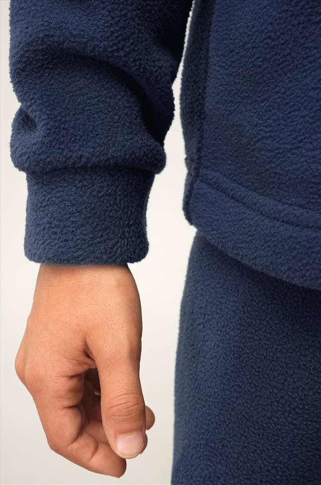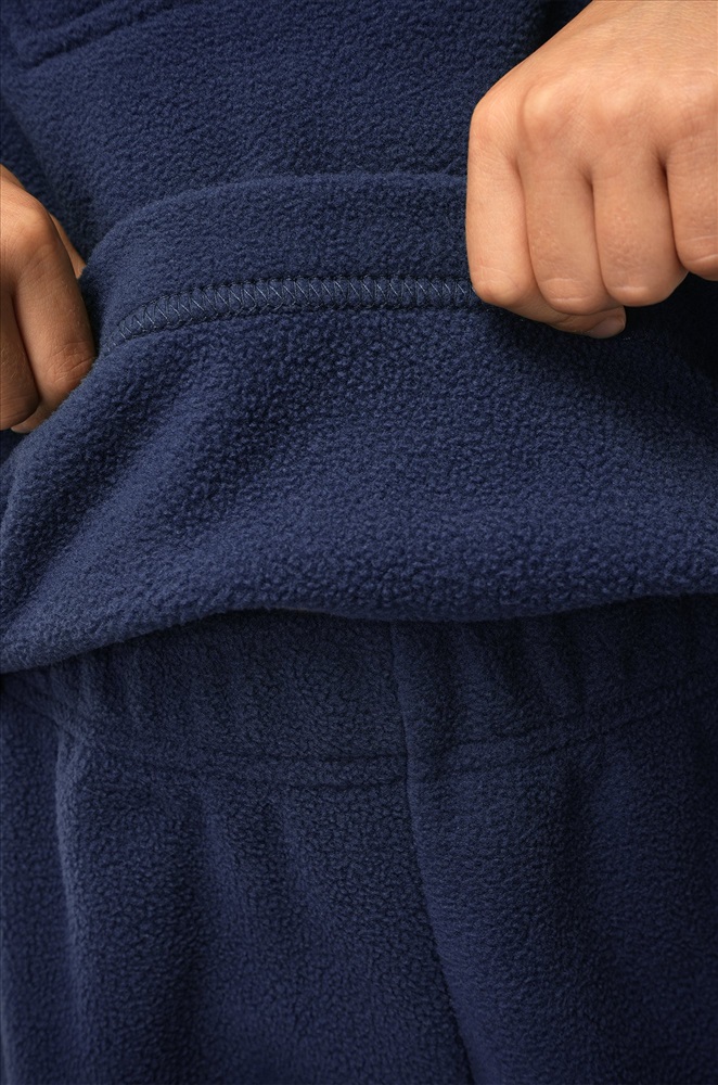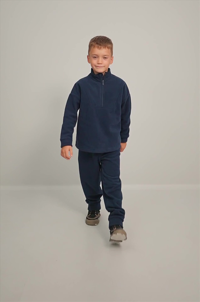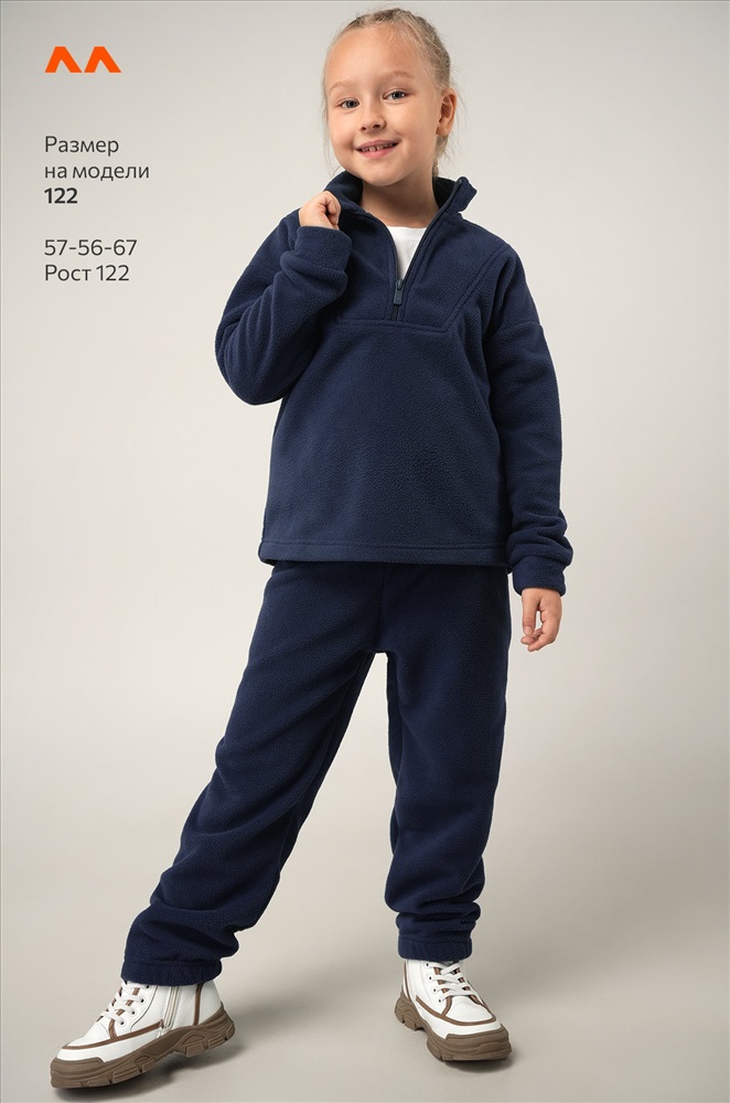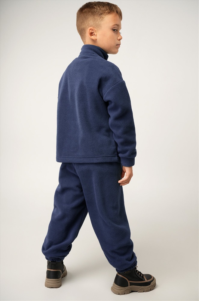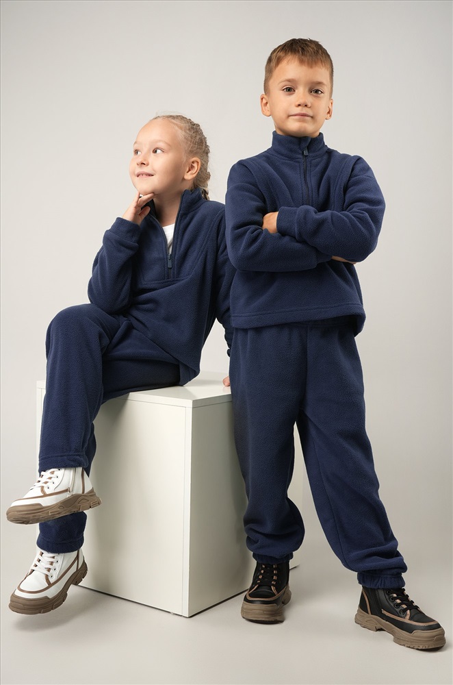 Темно-синий детский костюм для мальчиков и девочек создан, чтобы зима проходила тепло и комфортно. Флисовый костюм выполнен из плотной мягкой ткани, которая бережно сохраняет тепло и приятно ощущается на теле.