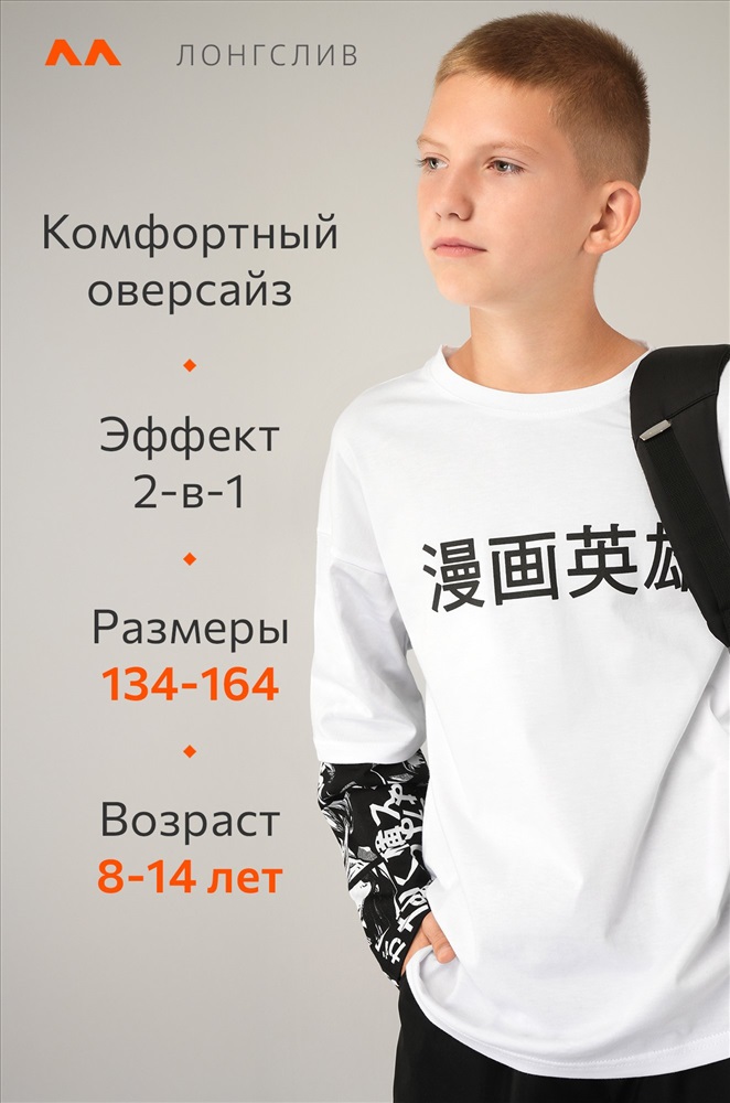 Преимущества: — 100% хлопок: дышащий, мягкий, комфортный к телу; — хлопковый трикотаж кулирная гладь сохраняет форму и хорошо держит посадку. — крой оверсайз: свобода движений и актуальный силуэт; — контрастный дизайн рукавов с графикой в стиле манги; — аниме принт на груди добавляет харизмы и индивидуальности; — длинный двойной рукав создает визуальный эффект многослойности. Детский лонг оверсайз идеально впишется в повседневные образы. Трикотажный лонг у2к идеален для прогулок с друзьями. Модель Иван, его рост 155, параметры: 72-68-81. На нем размер 158. Размер 134: длина:58 см; ширина:45,5 см; длина рукава внешняя:40 см; длина рукава внутренняя:38 см. Размер 140: длина:60 см; ширина:47см; длина рукава внешняя:42 см; длина рукава внутренняя:40 см. Размер 146: длина:63 см; ширина:48,5 см; длина рукава внешняя:44 см; длина рукава внутренняя:42 см. Размер 152: длина:65 см; ширина:50 см; длина рукава внешняя:46 см; длина рукава внутренняя:44 см. Размер 158: длина:67 см; ширина:51,5 см; длина рукава внешняя:48 см; длина рукава внутренняя:46 см. Размер 164: длина:69 см; ширина:53 см; длина рукава внешняя:50 см; длина рукава внутренняя:48 см. *замеры выборочные, могут незначительно отличаться. Комментарии к товару